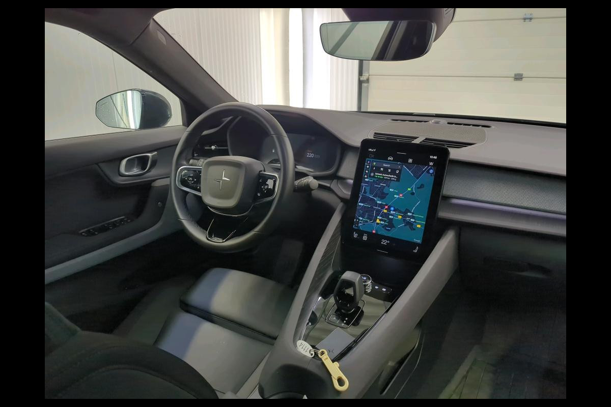 Deze auto is voorzien van een digitaal dashboard waarmee u de cockpit-interface kunt personaliseren. De vier camera's genereren samen een 360 graden beeld rond de auto, zodat u een volledig overzicht hebt van wat er rondom uw auto gebeurt. Met adaptive cruise control houdt deze auto automatisch afstand tot uw voorligger. U weet altijd hoe de auto eraan toe is dankzij Connected Services. Ook handig voor de garage en de wegenwacht. Even de app uitlezen en klaar! Ook het geluid aan boord is top-of-the-line. Het high performance audiosysteem levert superieure prestaties. Met full map navigatiesysteem, WIFI-hotspot, automatische airconditioning, draadloos opladen, DAB ontvangst en regensensor is deze Polestar helemaal compleet.