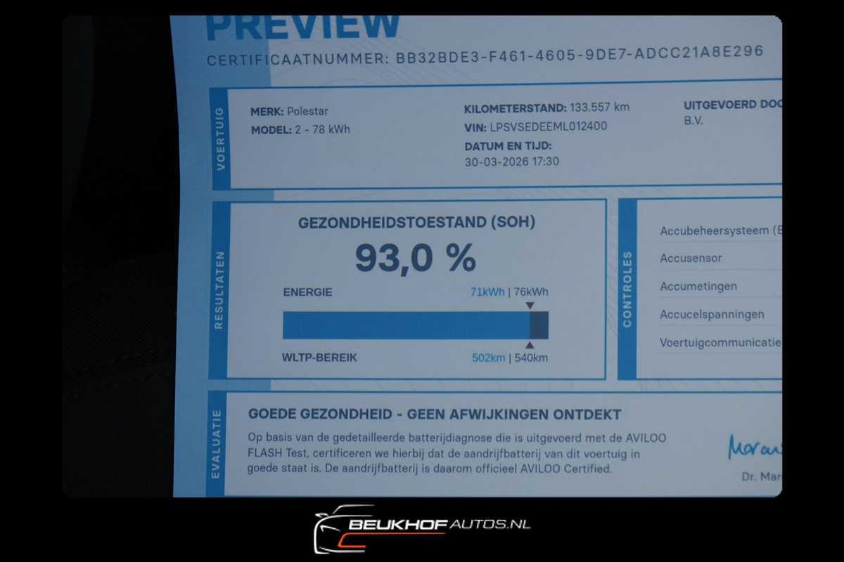 Polestar 2020 long range met een hoge Soh 93% - Auto ziet er keurig uit - Wij hebben een mooie voorraad elektrische auto's op voorraad staan kijk snel op www.beukhofautos.nl