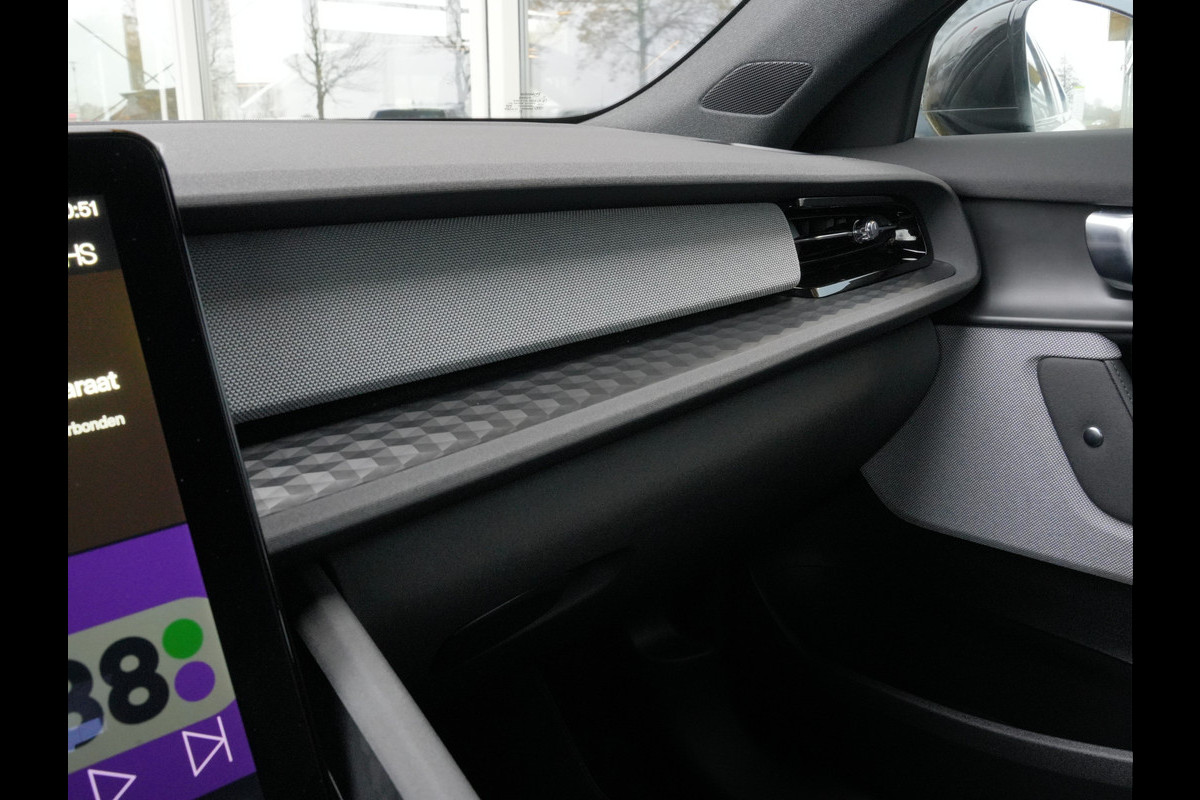 De indeling van het digitale dashboard is zo ingericht dat u met één blik precies weet wat u weten wilt. Navigatie, onderhoudsstatus, vergrendeling, audio... de mogelijkheden van remote services zijn haast oneindig. Ook deze auto laat zich bedienen en analyseren via uw smartphone! Met spraakbediening of de knoppen op het stuur regelt u het audio-installatiesysteem, terwijl u uw blik op de weg gericht houdt. De audio-installatie biedt daarbij glasheldere ontvangst dankzij dab-ontvangst. De kans op een kop-staart botsing wordt sterk gereduceerd door het systeem van achteropkomend verkeer waarschuwing. Dankzij automatische airconditioning is het interieur behaaglijk warm of verfrissend koel. Met parkeersensoren achter, regensensor, keyless entry, automatisch dimmende binnenspiegel, boordcomputer en verstelbaar stuur is deze Polestar helemaal compleet.