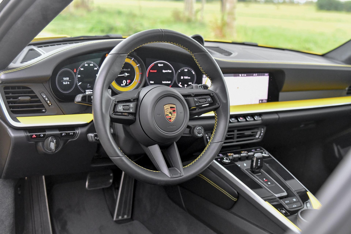 Porsche 911 3.8 Turbo S. Keramisch, Racing Yellow, Burmester, Alcantara hemel, PDCC, Sportuitl, Pano, ACC, 18 Weg, Dodeh, Camera!