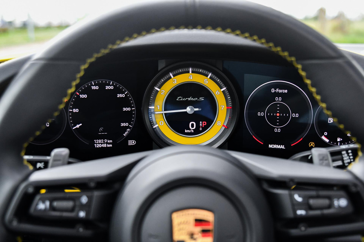 3.8 Turbo S. Keramisch, Racing Yellow, Burmester, Alcantara hemel, PDCC, Sportuitl, Pano, ACC, 18 Weg, Dodeh, Camera!