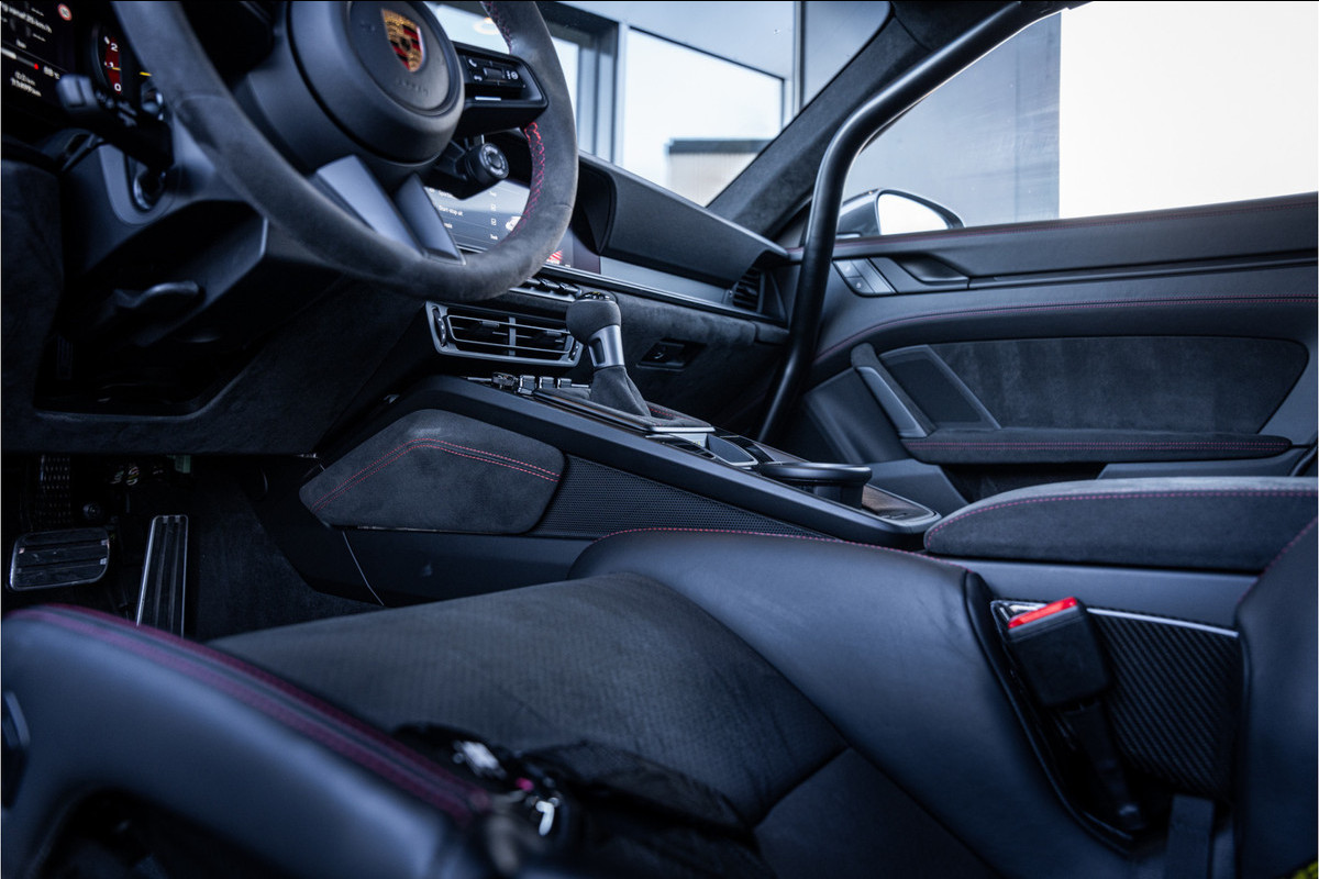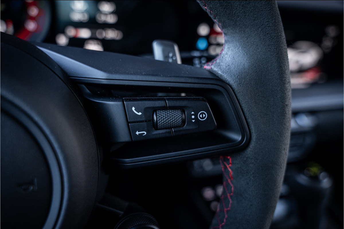 Het exterieur laat direct zien waar deze 911 voor gemaakt is. De kenmerkende grote achtervleugel, agressieve luchtinlaten en aerodynamisch verfijnde carrosserie zorgen voor serieuze downforce én een uitstraling die pure performance ademt. Elk element heeft een functie en draagt bij aan stabiliteit, koeling of grip.