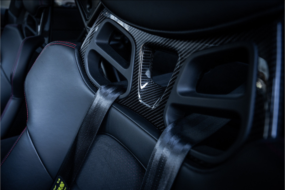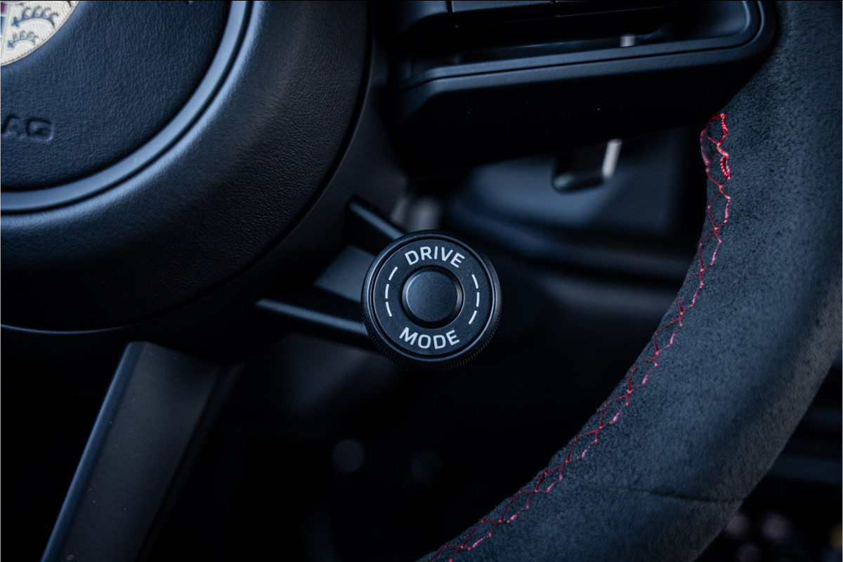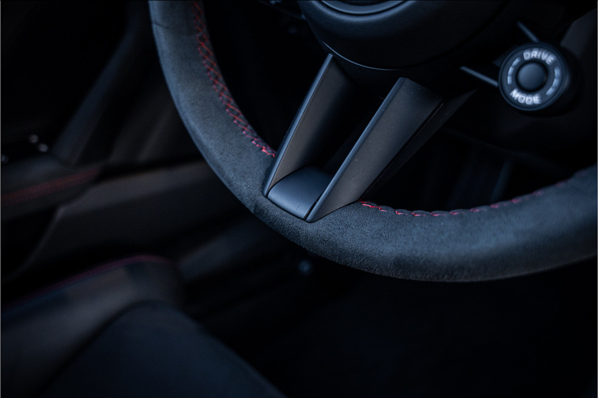 Binnenin word je omgeven door een interieur dat volledig gericht is op sportiviteit zonder aan kwaliteit in te leveren. Lichtgewicht kuipstoelen, alcantara-accenten en een strak, cockpitgericht ontwerp maken duidelijk dat dit een auto is die je niet alleen bestuurt — maar echt beleeft. Alles voelt vastberaden, nauwkeurig en doelgericht aan.
