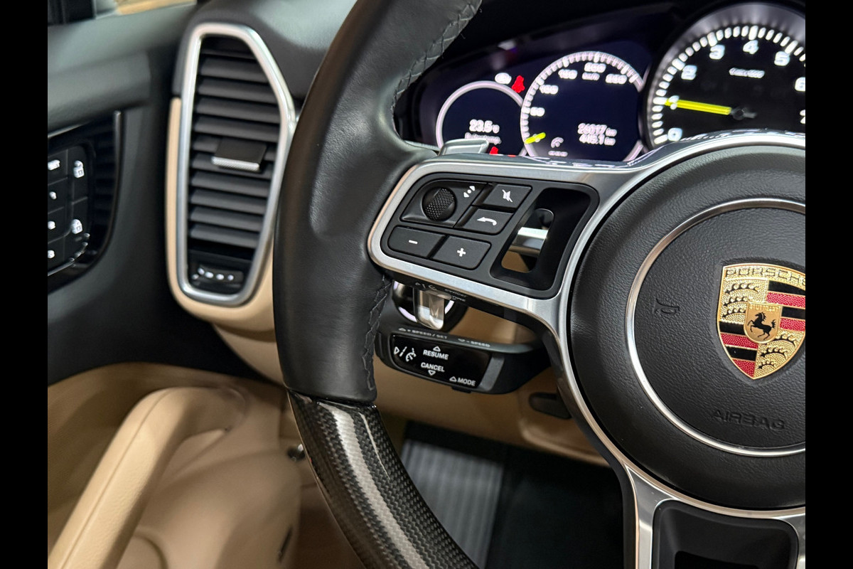 Met zorg samengesteld - Deze Porsche Cayenne 3.0 e-Hybride Platinum Edition met slechts 26.000 KM op de teller. Bomvol uitgevoerd : Meesturende achteras, Groot Entertainment Systeem achterin, Luchtvering Porsche Active Suspension Management