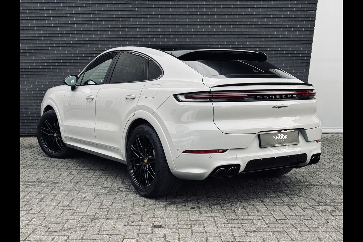 Porsche Cayenne Coupé 3.0 E-Hybrid / Fabrieksgarantie / Matrix Koplampen / 4 Wielbesturing / Chrono Pakket / Leder / Adaptieve Cruise Control / 21 Inch / Trekhaak / Bose / Stoelverwarming voor+achter / Panoramadak / Luchtvering