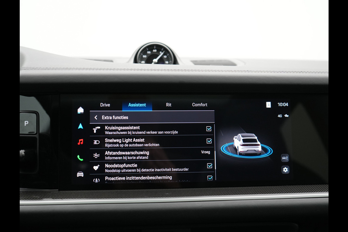 Pas de interface van uw cockpit moeiteloos aan. Het is mogelijk door het digitale dashboard in deze auto. Of u nu achteruit rijdt, parkeert of een smalle straat inslaat, de 360 graden camera op deze auto, mogelijk gemaakt door vier camera's, biedt een perfect beeld van uw omgeving. Als u de adaptive cruise control inschakelt, regelt de auto zelf de snelheid en de afstand tot de auto voor u. Uw smartphone is tegenwoordig de sleutel tot heel veel. Ook voor deze auto. Remote services, noemen we dat. Waar u ook bent, contact houden is een eitje. Klassiek, pop, hip-hop of gesproken woord: het Bose audiosysteem levert de volmaakte geluidsweergave. Deze Porsche is voorzien van dashboard met spraakbediening, Bose-audioinstallatie, full map navigatiesysteem, automatische airconditioning, sportstuur met schakelpaddels en draadloos opladen.