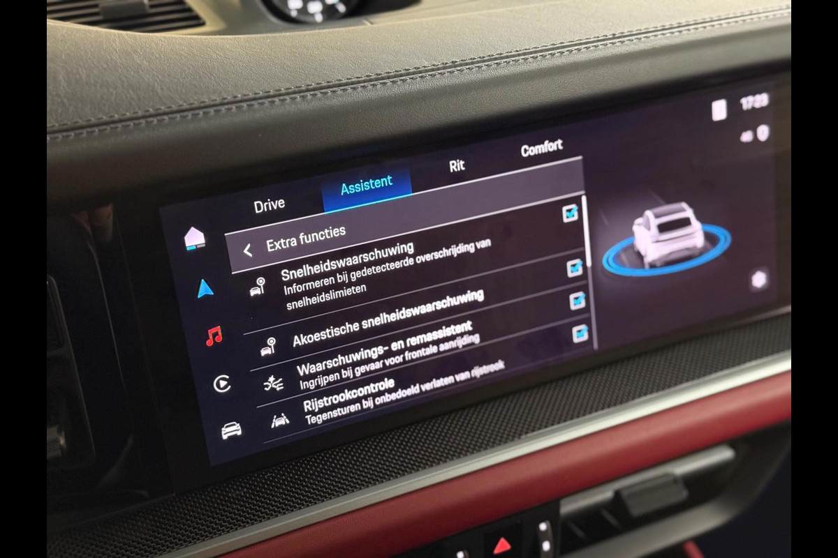 U geniet nog meer van het rijden met uw Porsche omdat u wordt beschermd door intelligente veiligheidssystemen. In het instrumentarium kunt u bovendien de verkeersborden zien die u onderweg tegenkomt. Zo helpt deze Porsche u om veiliger te rijden. Het Lane-keeping systeem doet precies wat nodig is: waarschuwen en corrigeren bij onbedoelde overschrijding van de rijstrooklijnen. Accident avoidance system is een pre crash systeem. Het systeem helpt u om een dreigende aanrijding te voorkomen. De veiligheid van deze auto wordt verder verhoogd door hill hold functie, brake assist en bandenspanningcontrolesysteem.
