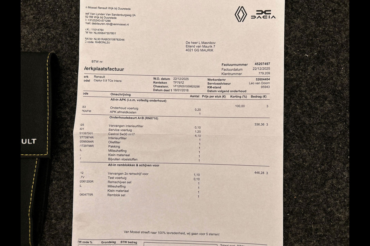 Onderhoudsboekjes: Aanwezig