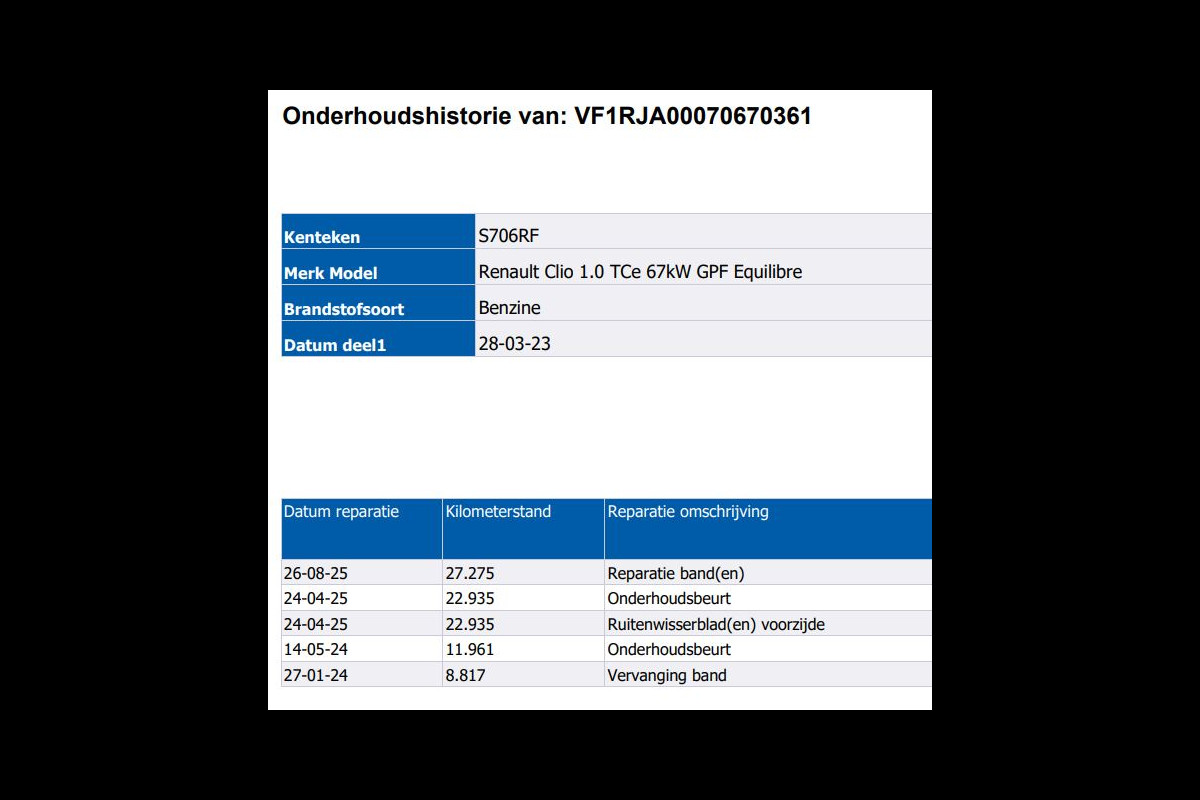 Onderhoudsboekjes: Aanwezig (dealer onderhouden)