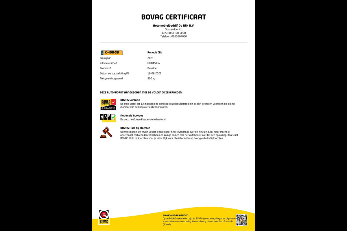 Dit afleverpakket bevat: BOVAG garantie (12 maanden); BOVAG 40-Puntencheck; BOVAG Afleverbeurt