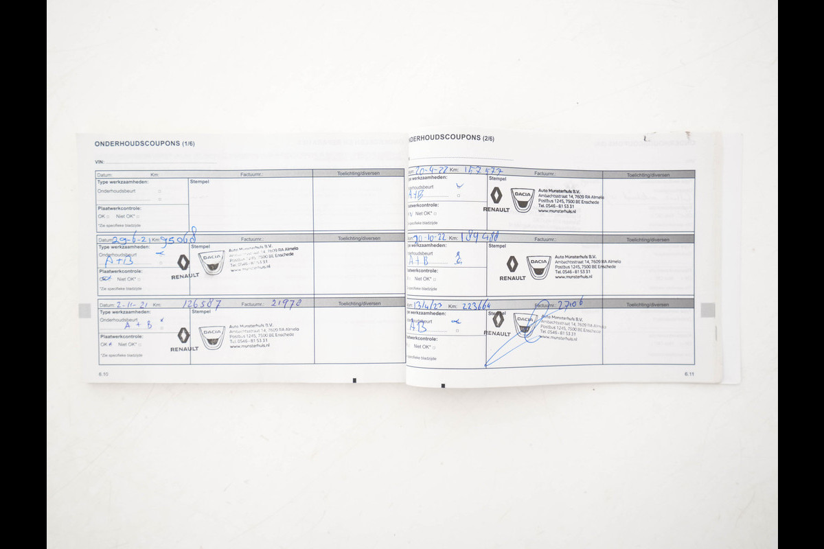 Onderhoudsboekjes: Aanwezig