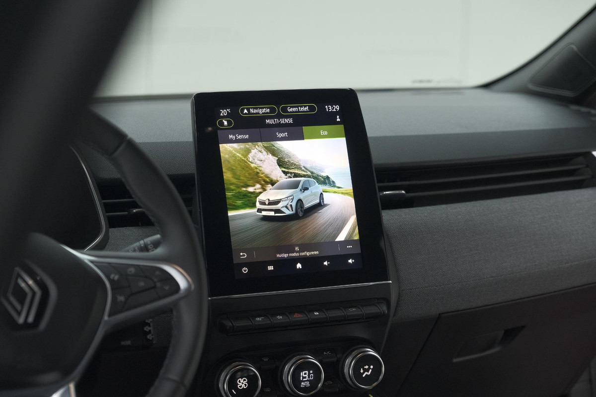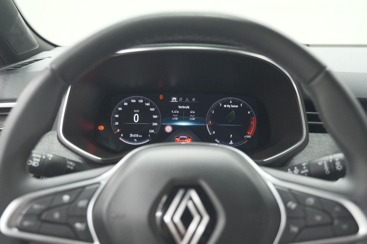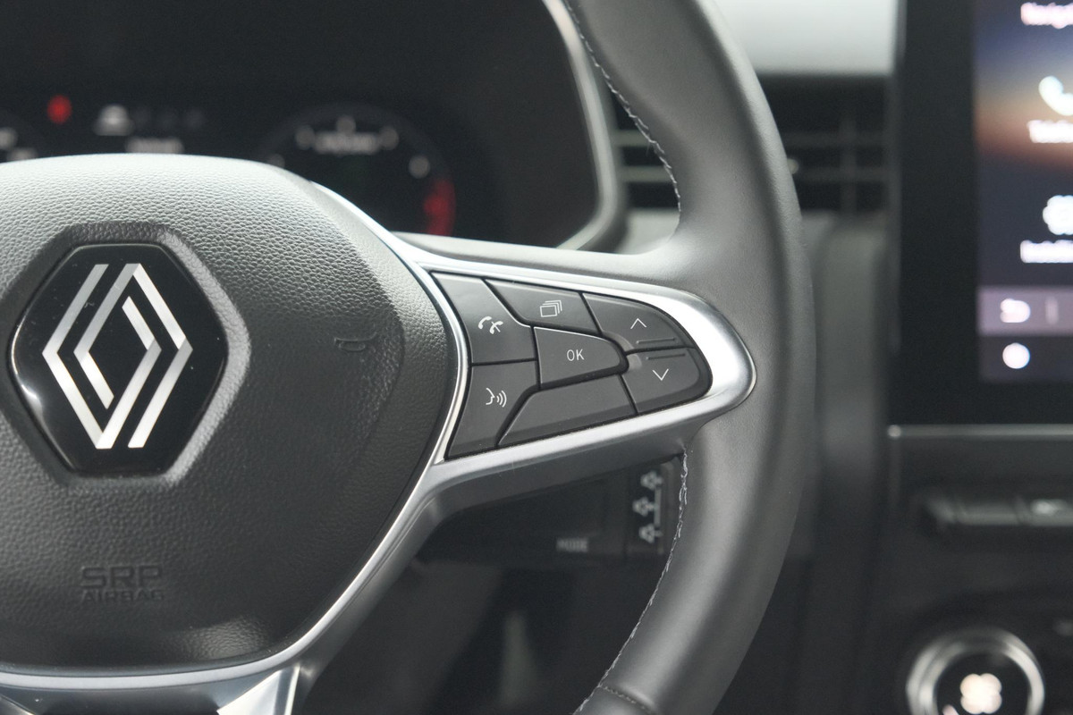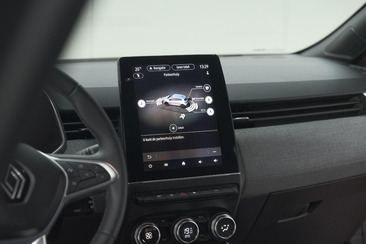De vier camera's die samen de 360 graden camera vormen, bieden u de mogelijkheid om obstakels in elke richting te zien. Adaptive cruise control houdt de ingestelde snelheid vast en houdt automatisch afstand tot uw voorligger. Deze Renault Clio is 'connected'. Belangrijke functies worden permanent gemeten en zijn uit te lezen via een speciale app, ook op afstand. Met de knoppen op het stuur regelt u het audiosysteem en het navigatiesysteem, terwijl u uw blik op de weg gericht houdt. De audio-installatie biedt daarbij glasheldere ontvangst dankzij DAB-ontvangst. De electronic climate control zorgt voor een prettige binnentemperatuur. Deze Renault is voorzien van regensensor, keyless entry, automatisch dimmende binnenspiegel, boordcomputer en verstelbaar stuur.