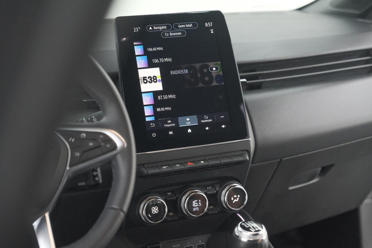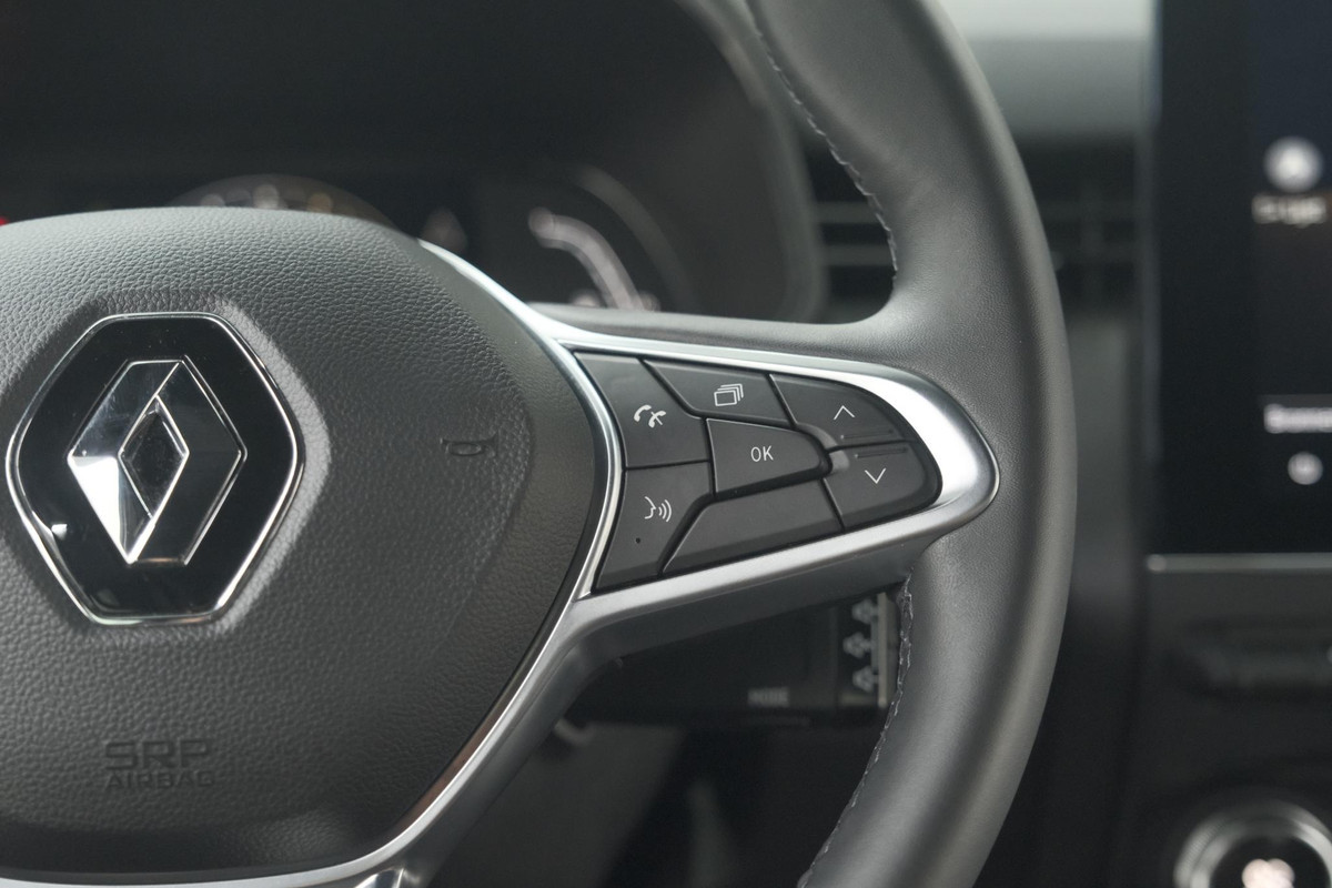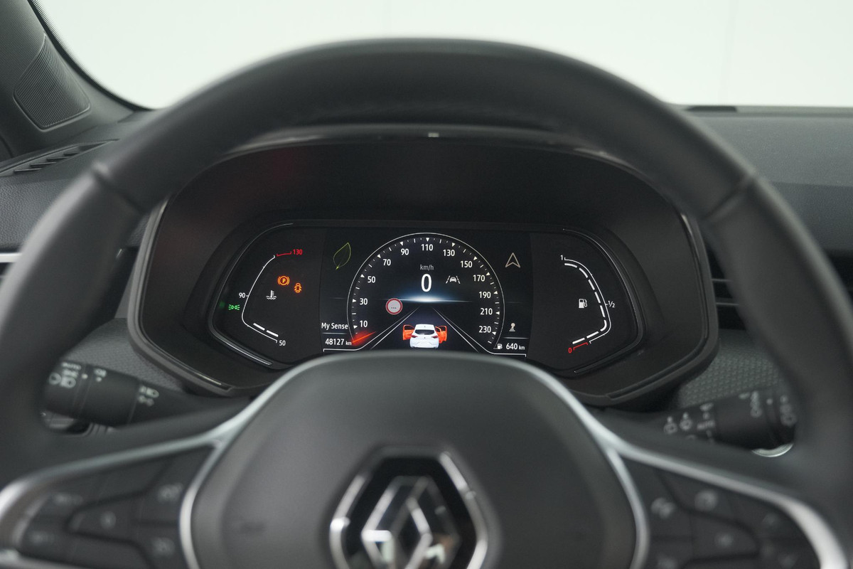Via het digitale dashboard bent u permanent op de hoogte van alle informatie die u nodig heeft voor een veilige rit. Het audiosysteem met DAB-ontvangst en het navigatiesysteem bedient u veilig met knoppen op het stuur. Electronic climate control regelt volautomatisch de temperatuur. U kiest de gewenste temperatuur en het systeem doet de rest. De meeste schade bij inparkeren komt van een randje of paaltje dat u even niet zag. Maar de parkeersensoren zien alles en waarschuwen op tijd. Natuurlijk is een complete auto als deze ook voorzien van sensoren die de omgeving in de gaten houden. Deze Renault heeft niet alleen een automatisch inschakelbare verlichting aan boord, maar ook een regensensor. Deze auto is voorzien van cruise control, keyless entry, automatisch dimmende binnenspiegel, lederen stuur en boordcomputer.