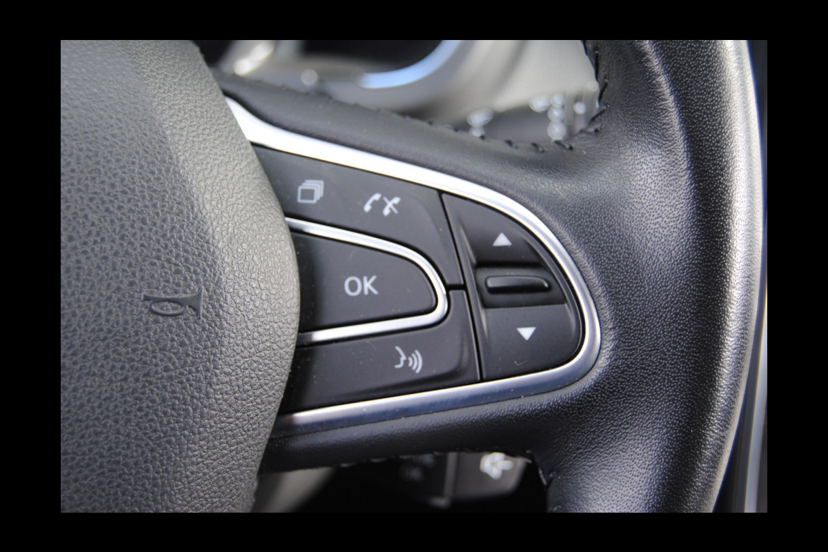 Onder alle omstandigheden perfect zicht op wat zich achter de auto afspeelt: de achteruitrijcamera zorgt ervoor! Een belangrijke veiligheidsvoorziening is de bediening van het audiosysteem en het navigatiesysteem, via knoppen op het stuur en middels spraakbediening. DAB-ontvangst geeft daarbij een kraakheldere ontvangst. Het spreekt voor zich dat een auto als deze ook van automatische airconditioning is voorzien. Om de veiligheid onderweg te verhogen, heeft deze Renault zowel een automatisch inschakelbare verlichting als een regensensor aan boord, zodat hij zelf de verlichting en de ruitenwissers kan inschakelen. Cruise control is ook een van de meegeleverde opties. Wat u ook in deze auto kunt vinden zijn keyless entry, automatisch dimmende spiegels, lederen stuur, boordcomputer en lederen versnellingspook.