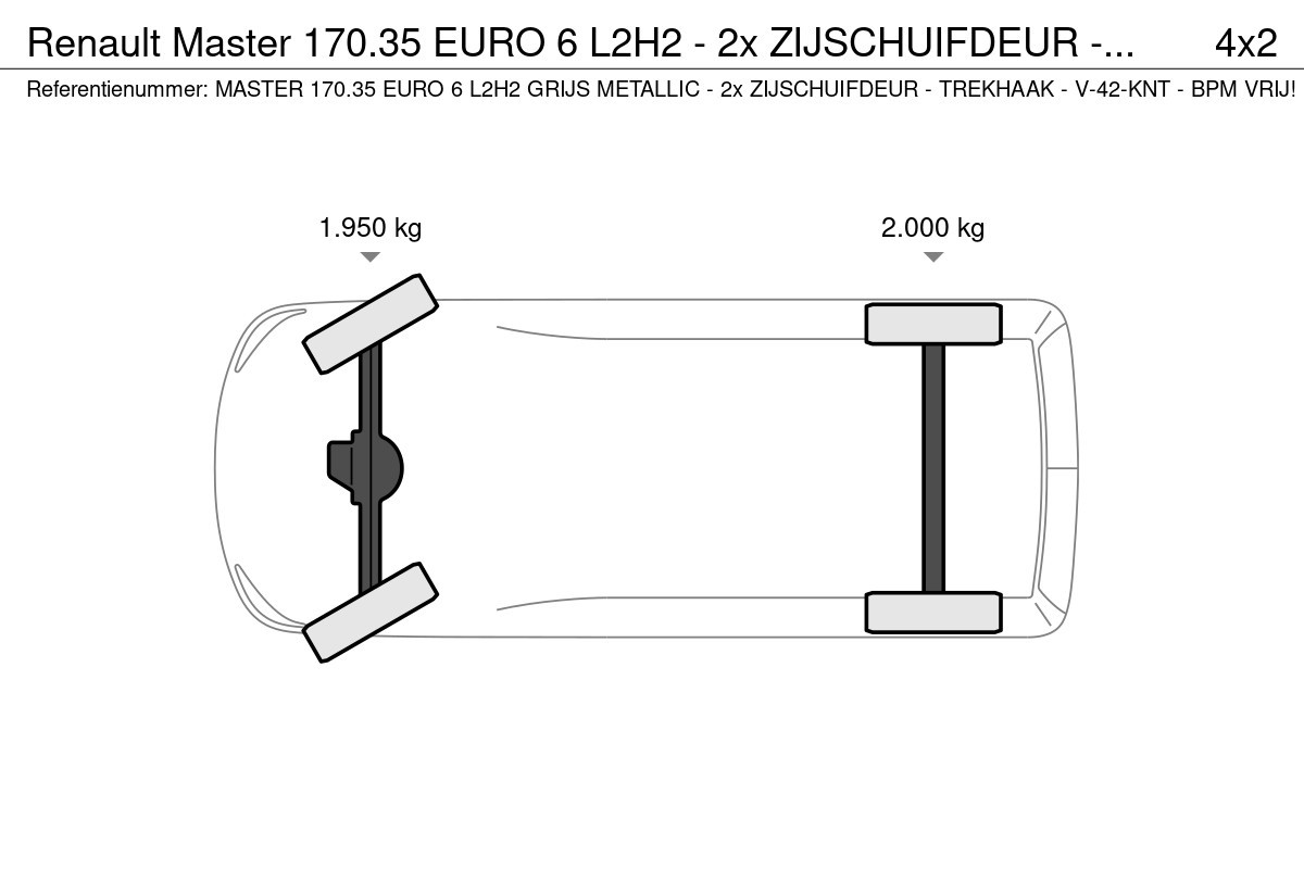 Referentienummer: MASTER 170.35 EURO 6 L2H2 GRIJS METALLIC - 2x ZIJSCHUIFDEUR - TREKHAAK - V-42-KNT - BPM VRIJ!