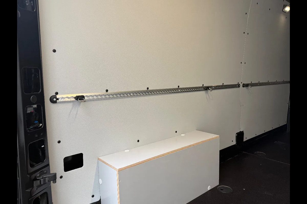 Betimmering van de laadruimte: Vloer in Betonplex, wanden in kunststof