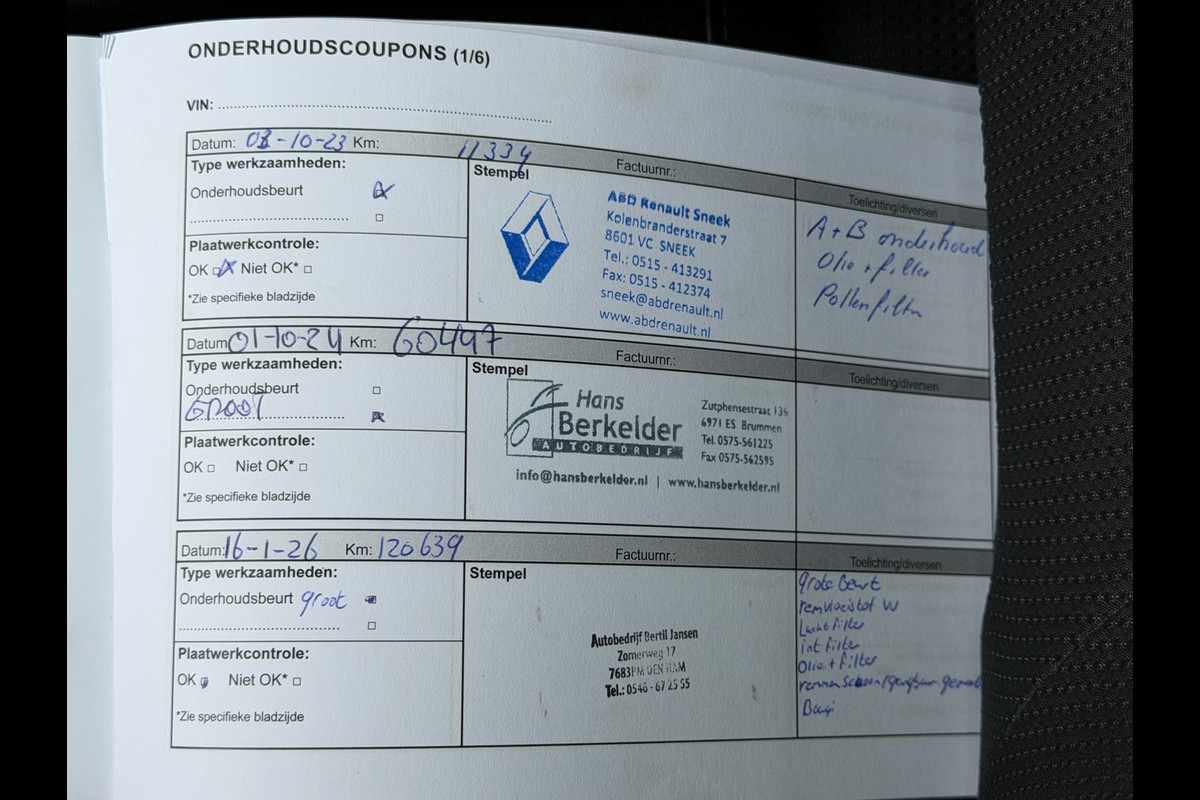 Onderhoudsboekjes: Aanwezig