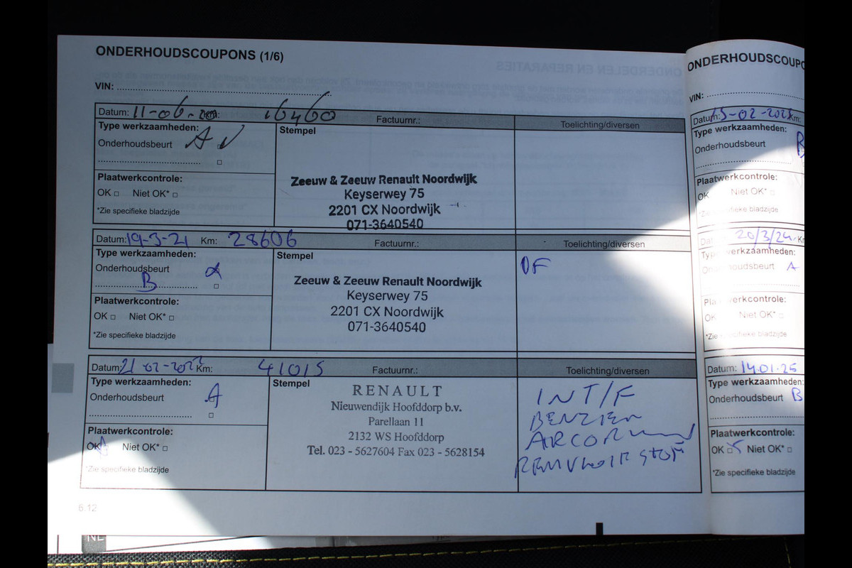 Onderhoudsboekjes: Aanwezig