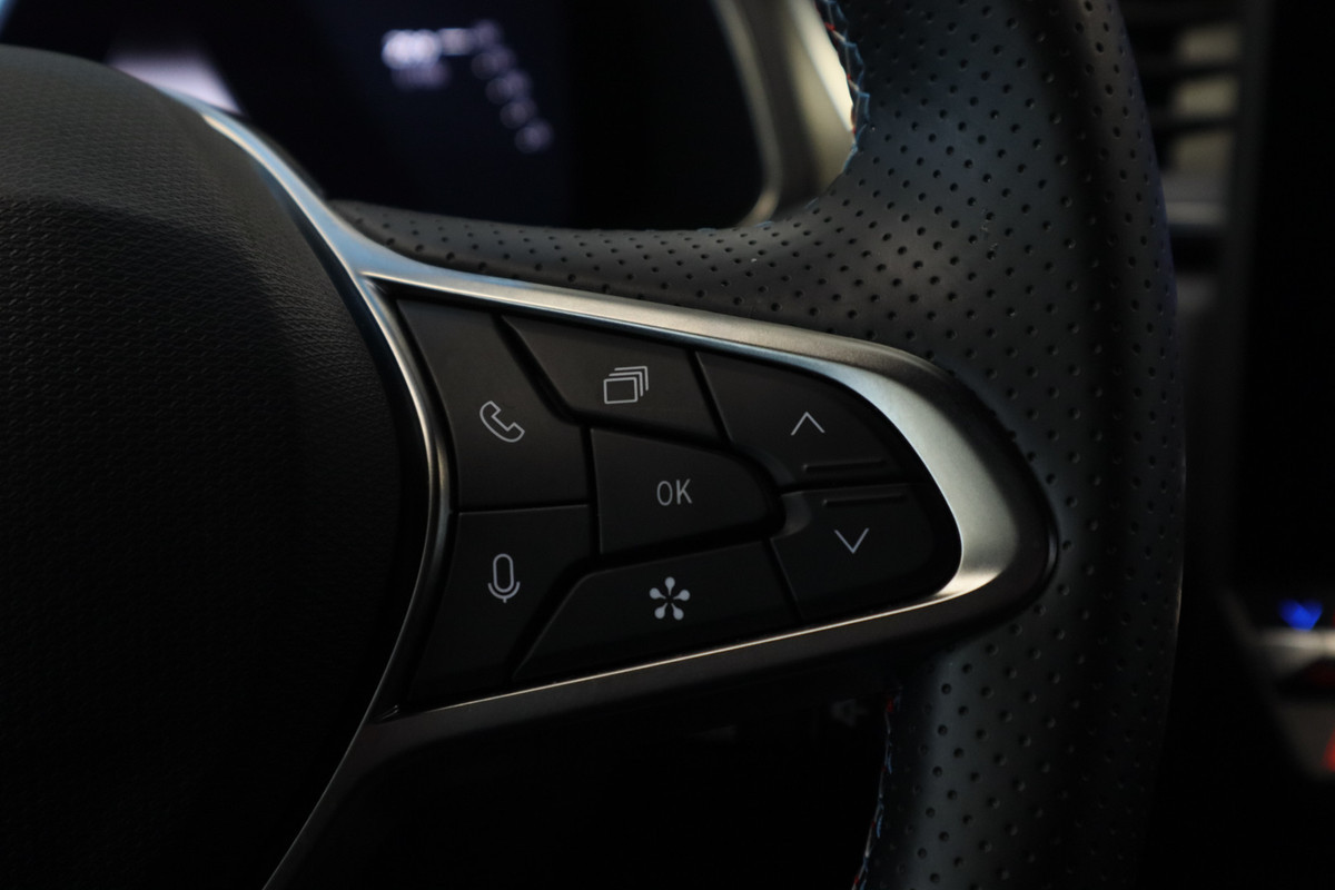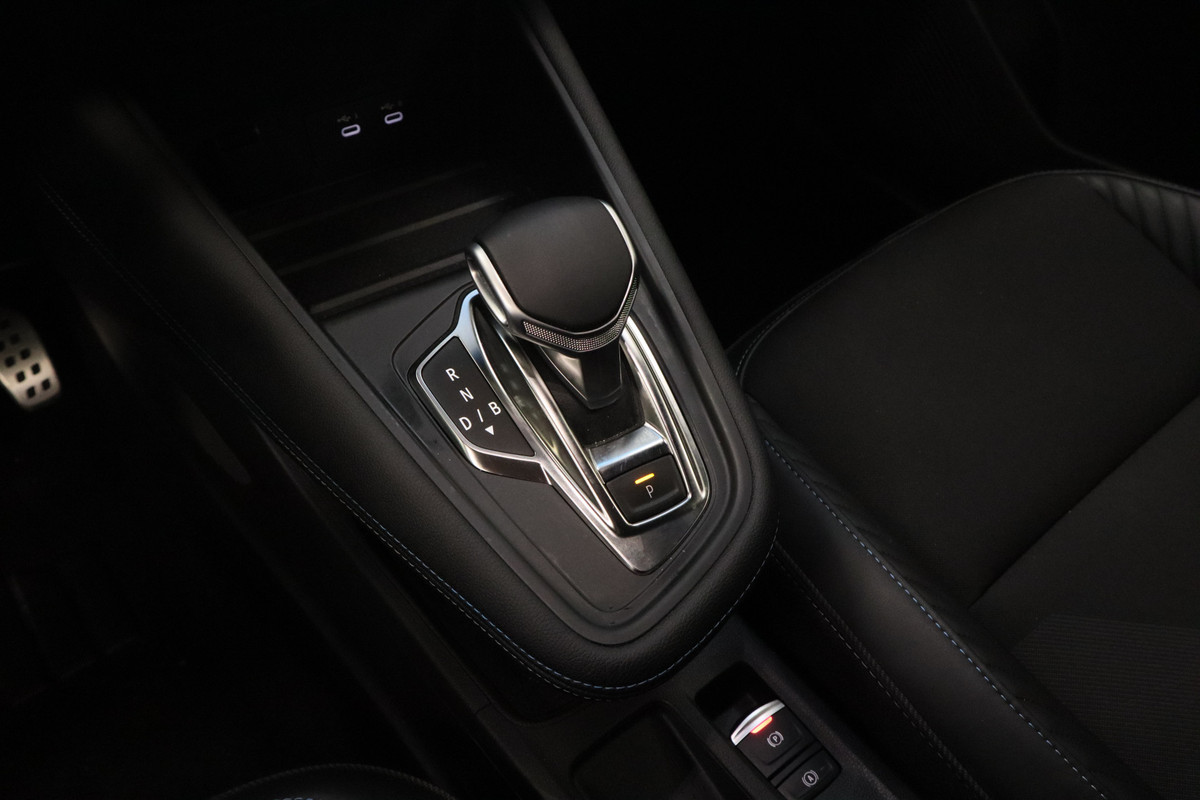 Achteruitrijden en inparkeren worden een eitje dankzij de achteruitrijcamera. Als u de adaptive cruise control inschakelt, regelt de auto zelf de snelheid en de afstand tot de auto voor u. In deze Symbioz vindt u niet alleen schakelaars op het stuur om het navigatiesysteem te bedienen en het audio-installatiesysteem met DAB-ontvangst, maar er is ook spraakbediening. Geen gedoe met snoertjes! De draadloze telefoonlader zorgt onderweg weer voor een volle smartphone-accu. Tot de standaard uitrusting van deze auto hoort ook automatische airconditioning. Ook is de Renault uitgerust met: regensensor, keyless entry, automatisch dimmende binnenspiegel en lederen stuur.