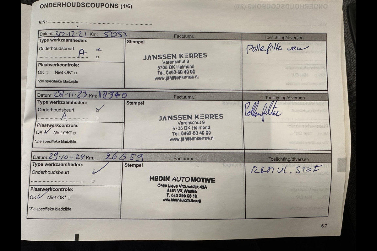 - Vrijwaringsbewijs van de (mogelijke) inruilauto
