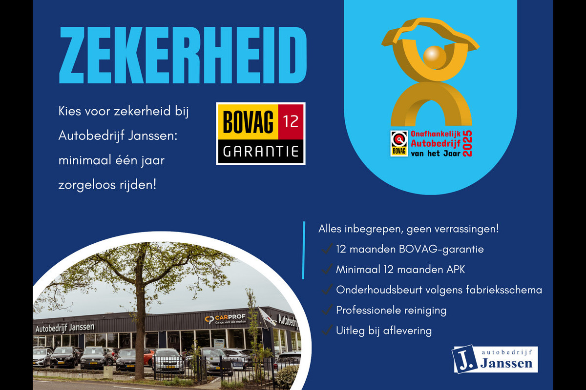 Inbegrepen afleverpakket: 12 maanden BOVAG garantie: De getoonde prijs is inclusief minimaal 12 maanden APK, onderhoudsbeurt bij aflevering en 12 maanden BOVAG garantie.