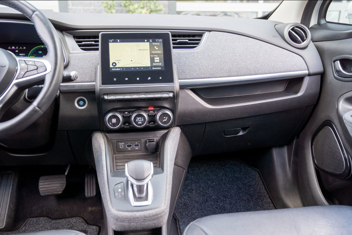 Mooie complete Renault Zoe met een accu in eigendom, uitgerust met o.a. parkeersensoren rondom, achteruitrijcamera, stuur- en stoelverwarming en dode hoek detectie. Daarnaast airco, navigatie, bluetooth en Apple Carplay/Android Auto.