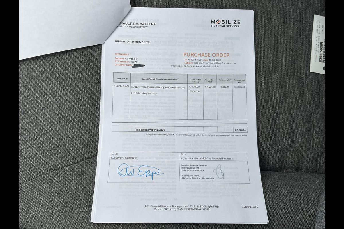 De hoogvoltaccu is volledig afgekocht (11-2025) en de factuur is aanwezig. Bij binnenkomst is de auto voorzien van een State of Health (SOH)-meting, met een uitstekende score van maar liefst 94%. Daarnaast zit er op de hoogvoltaccu nog fabrieksgarantie tot 19-10-2028, wat extra zekerheid biedt.