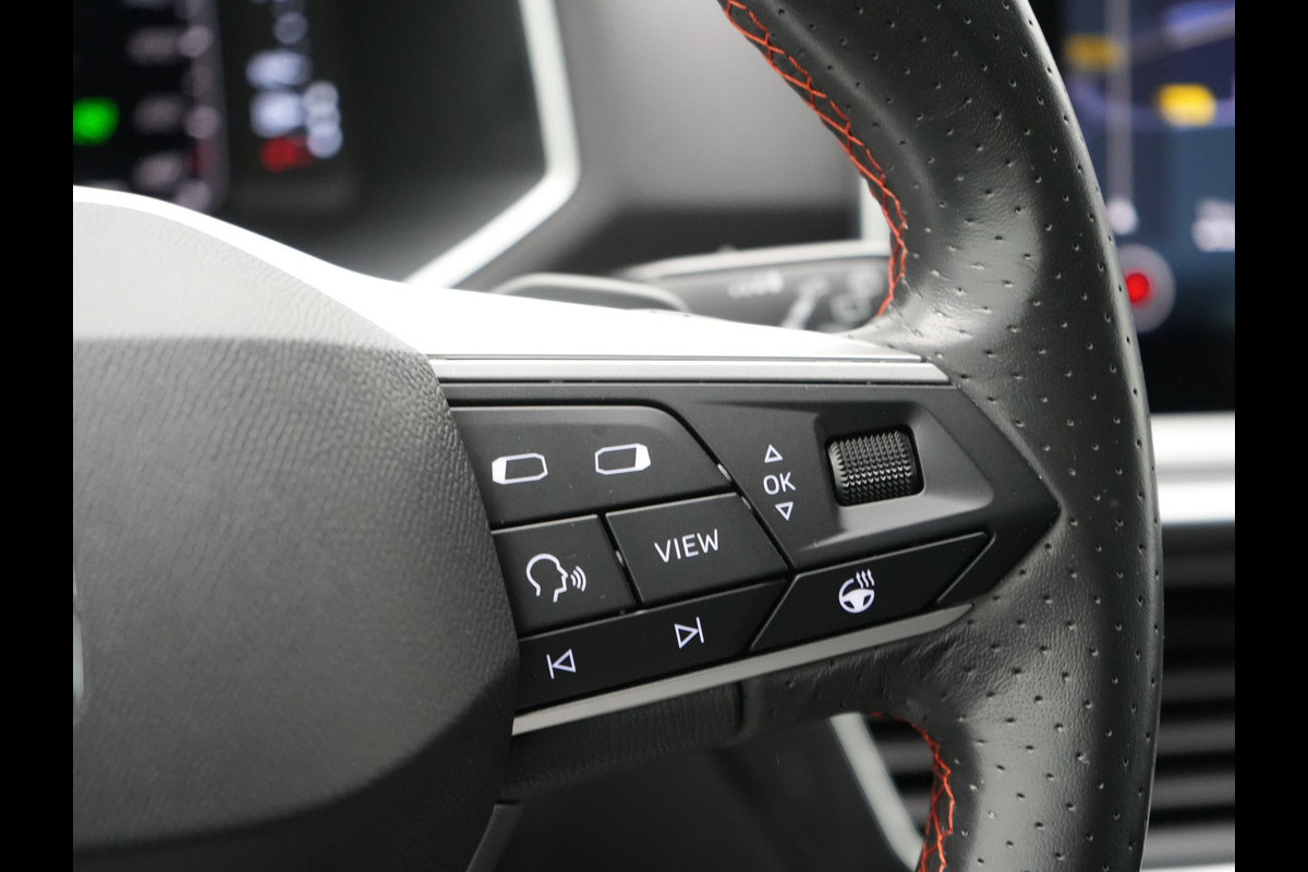 Uw rit wordt comfortabel en veilig gemaakt door het digitale dashboard dat alles projecteert wat u wenst in de digitale wereld van mobiliteit. De vier camera's die samen de 360 graden camera vormen, bieden u de mogelijkheid om obstakels in elke richting te zien. Adaptive cruise control is een comfortabele en veilige optie. Het systeem reguleert de snelheid en houdt automatisch afstand tot uw voorligger. Na een lange werkdag in de file: daar zit niemand op te wachten. Gelukkig helpt de file assistent een handje. Het radarsysteem meet de ruimte tot de voorligger en bewaakt de juiste afstand. Stilstaan? Dan remt en stopt de auto vanzelf. Ingericht op Connected Services, voor een nog veiligere en comfortabelere rit. De uitrusting van deze SEAT is met full map navigatiesysteem, WIFI-hotspot, kruisend verkeer detectie, automatische airconditioning, schakelpaddles aan het stuur en regensensor behoorlijk compleet.