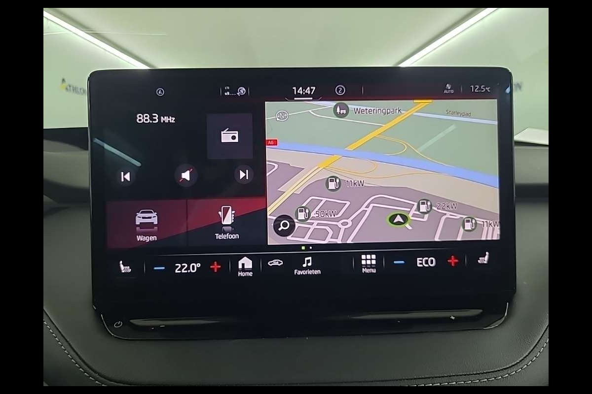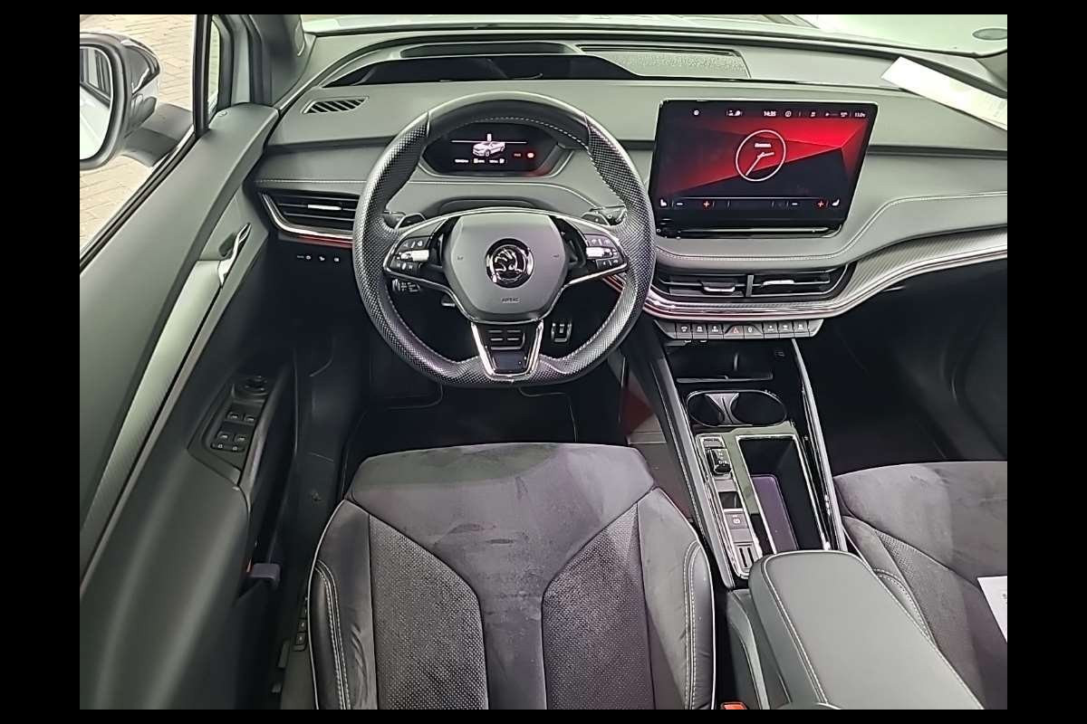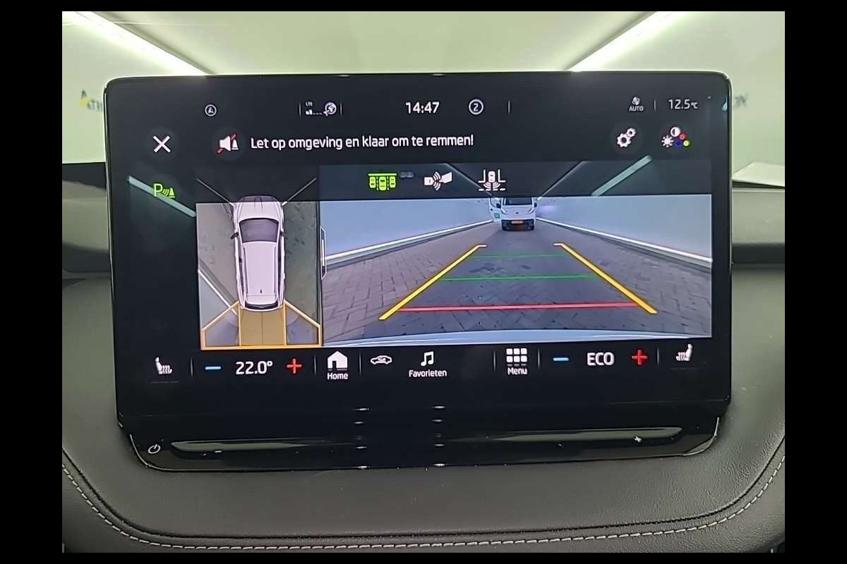 Zoals u mag verwachten van deze Skoda Enyaq iV is hij uitgerust met een reeks aan actieve veiligheidssystemen. Deze Skoda Enyaq iV is ook behulpzaam als het gaat om een rechte koers. Het Lane-keeping systeem signaleert en corrigeert als u onbedoeld de rijstrooklijnen dreigt te overschrijden. Ook als uw aandacht even verslapt, blijft de forward collision warning bij de wekker. Dreigt er een botsing met een voor- of tegenligger, dan waarschuwt het systeem direct. Het laatste wat u wilt is dat u achter het stuur indommelt. Om dat te voorkomen is deze auto uitgerust met vermoeidheidsherkenning. Ook helpen het accident avoidance system en bandenspanningcontrolesysteem, uw rit tot een veilige rit te maken.