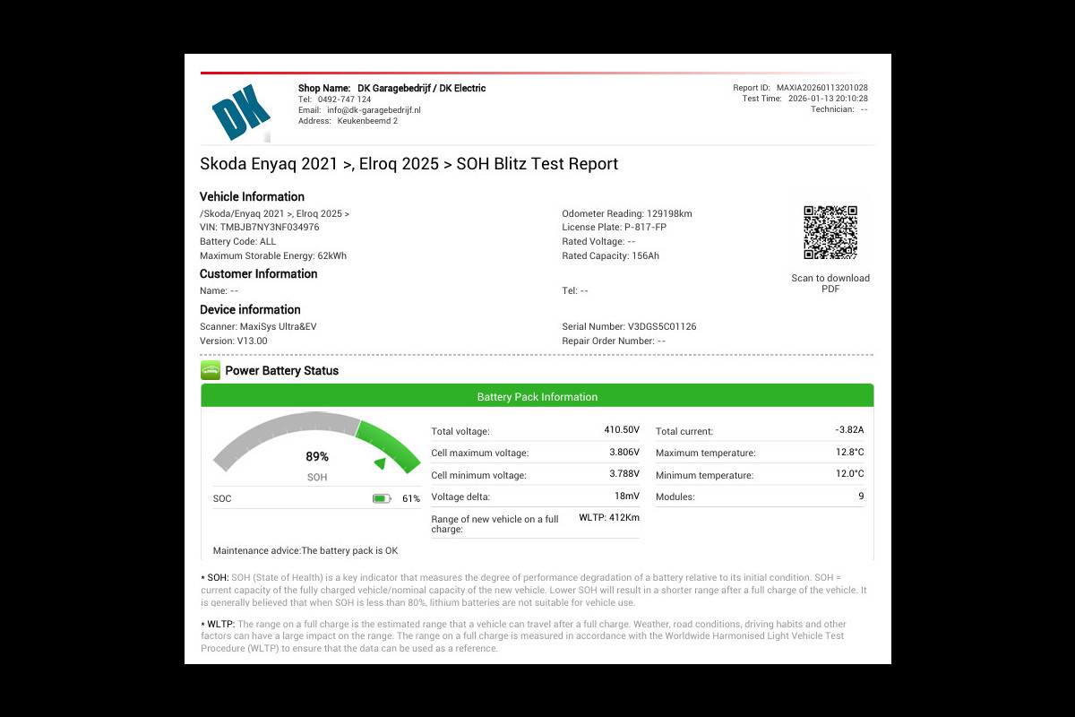 Accu: 58 kWh, Conditie: 89%