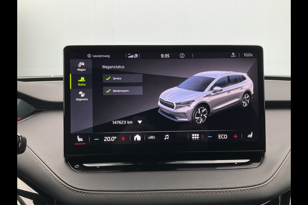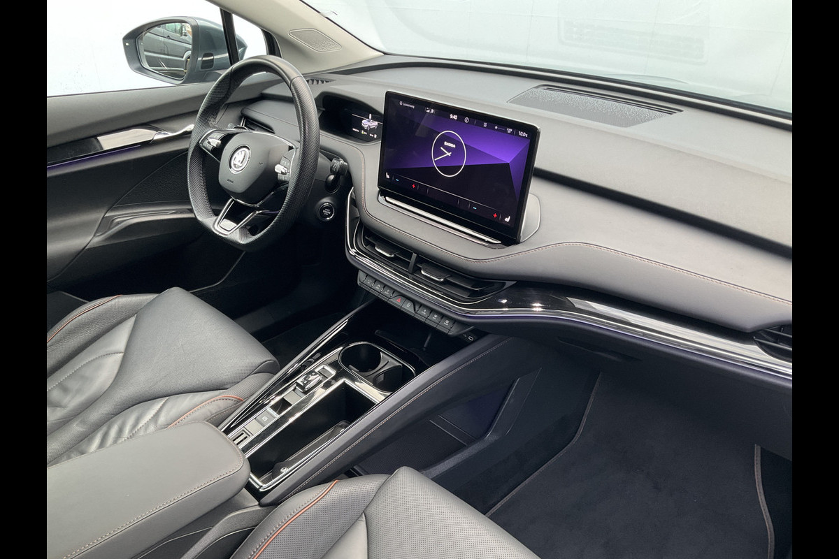 U voelt de onbeperkte kracht van elektrische aandrijving, elke keer als u op weg gaat met deze ŠKODA Enyaq iV. Met de elektromotor zoeft u fluisterzacht over de weg. De krachtige motor geeft deze ŠKODA uitstekende prestaties. Regen, wind, hagel, sneeuw? Als het buiten guur is, doet de stoelverwarming z'n weldadige werk! Een praktische extra is de elektrisch bedienbare achterklep die opent en sluit met een druk op de knop. Ook op de achterbank kunnen passagiers zichzelf snel opwarmen dankzij de achterbankverwarming. De koplampen zijn voorzien van de allernieuwste lichttechnologie: matrix LED-verlichting. Tot de uitrusting van deze ŠKODA behoren ook 21 inch lichtmetalen velgen, halflederen bekleding, adaptief dempingsysteem, in delen neerklapbare achterbank, LED-achterlichten en verstelbare lendensteunen.