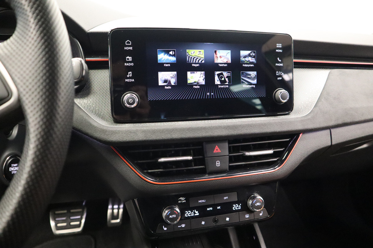 De achteruitrijcamera geeft u duidelijk zicht op de ruimte achter de auto. Pech of storing, altijd vervelend. Maar met Connected Services weet u direct wat eraan scheelt. En dus ook wat er moet gebeuren. Deze ŠKODA is voorzien van knoppen op het stuur om het audio-installatiesysteem met dab-ontvangst te bedienen. De auto is voorzien van een draadloze telefoonlader, zodat uw smartphone tijdens de rit 100% wordt. De electronic climate control zorgt voor een behaaglijk klimaat in de auto. Ook schakelpaddles aan het stuur, regensensor, cruise control, automatisch dimmende binnenspiegel, centrale deurvergrendeling met afstandsbediening en boordcomputer horen tot de voorzieningen op deze auto.