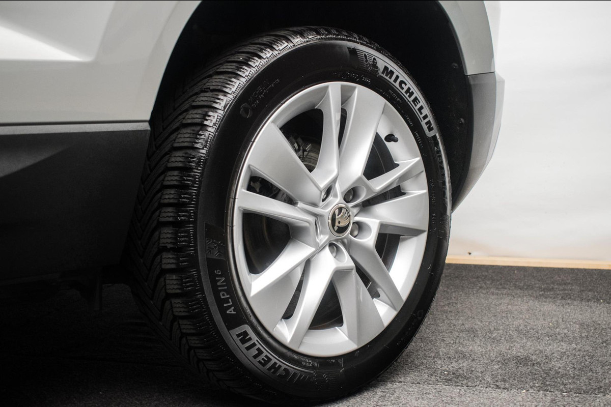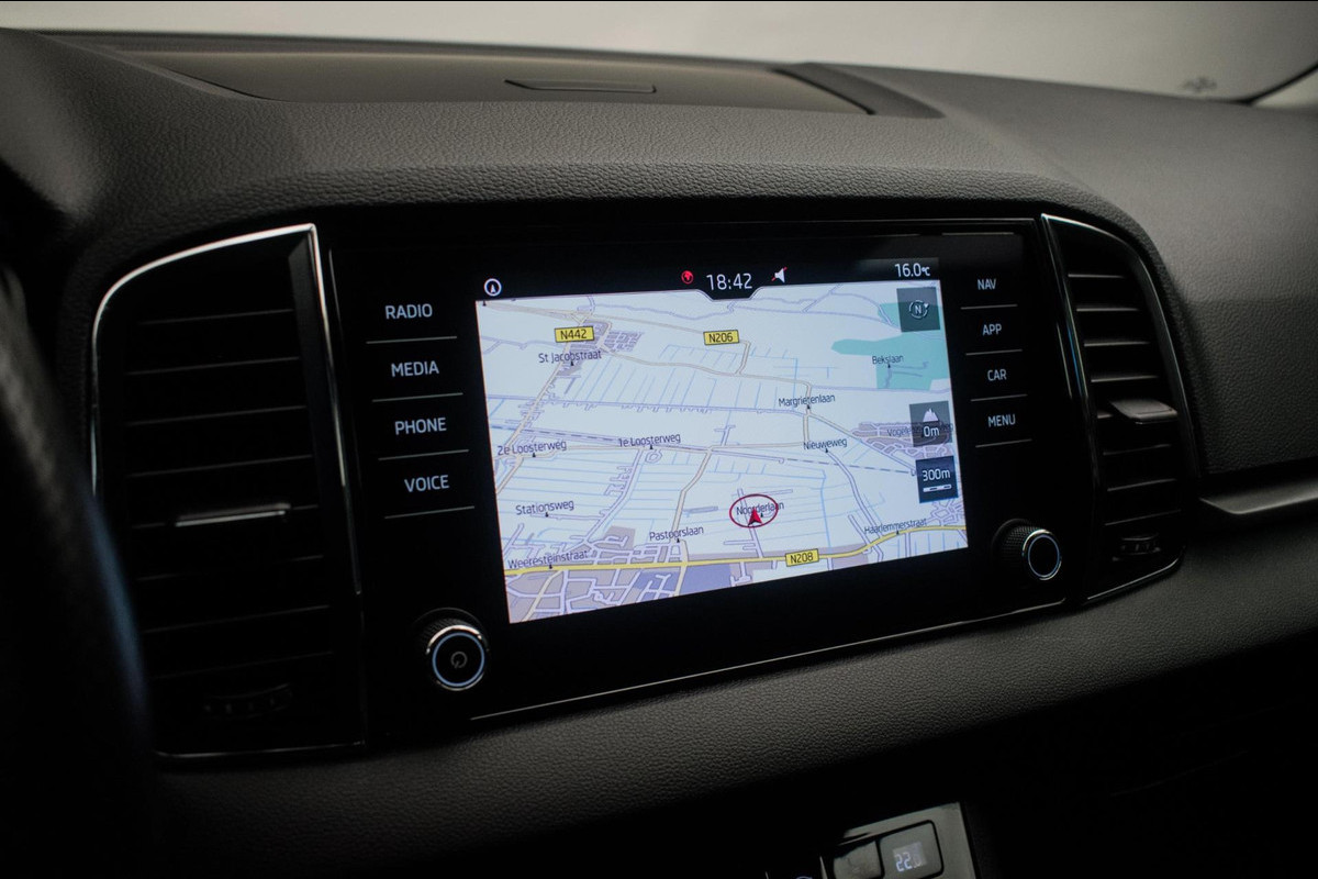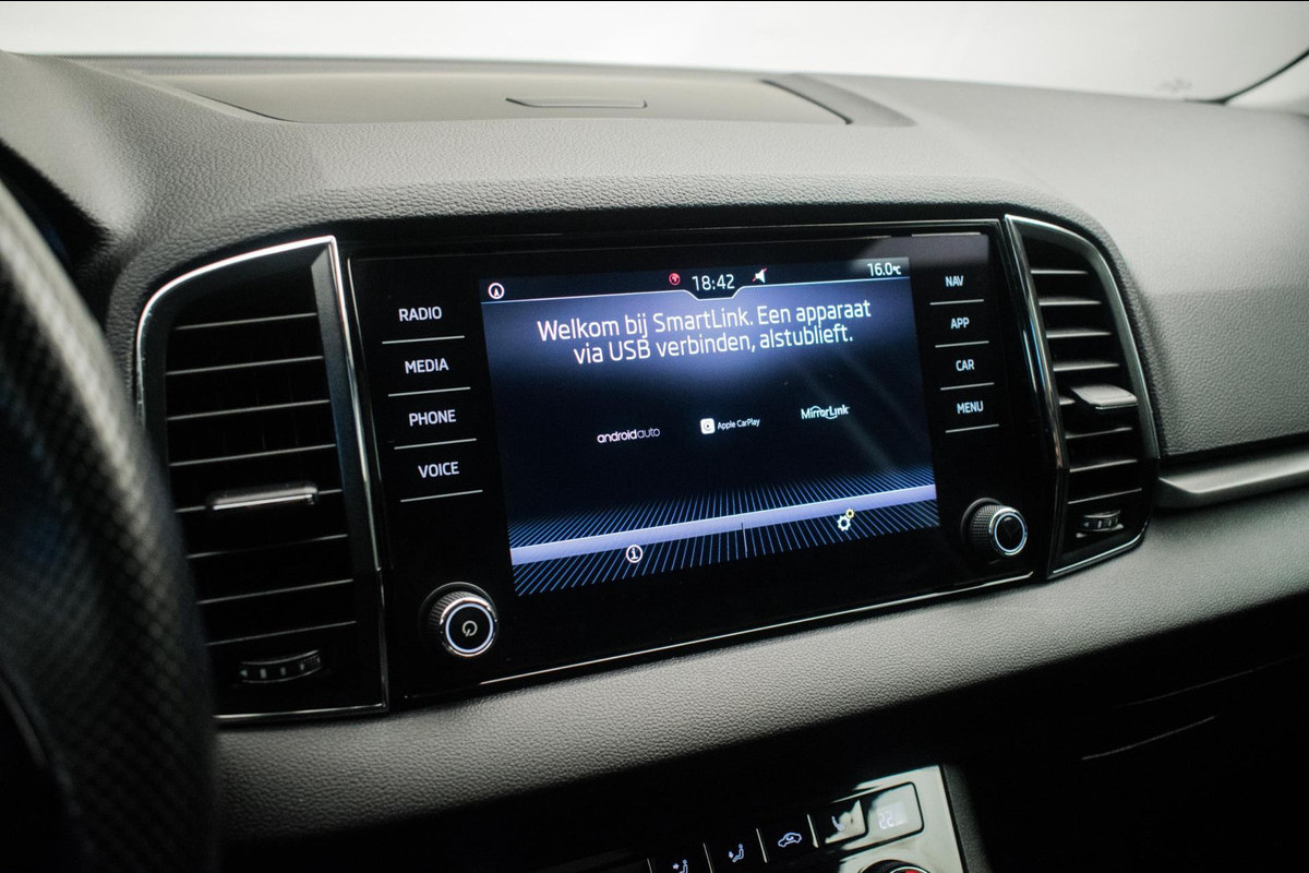 Schitterende, in het Steel Grey uitgevoerde Skoda Karoq 1.0 TSI Ambition Sport van de 1e eigenaar, origineel Nederlands geleverd, waarvan de volledige onderhoudshistorie aanwezig is. Zeer compleet uitgevoerd!