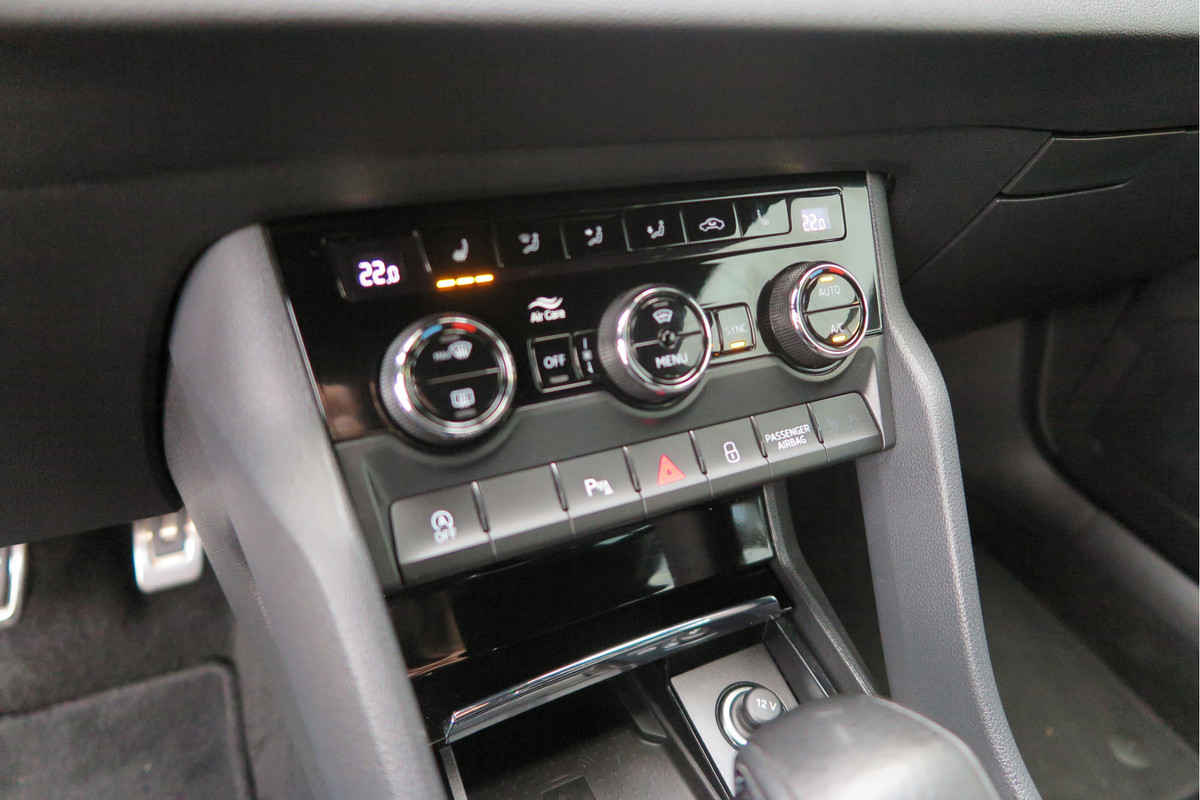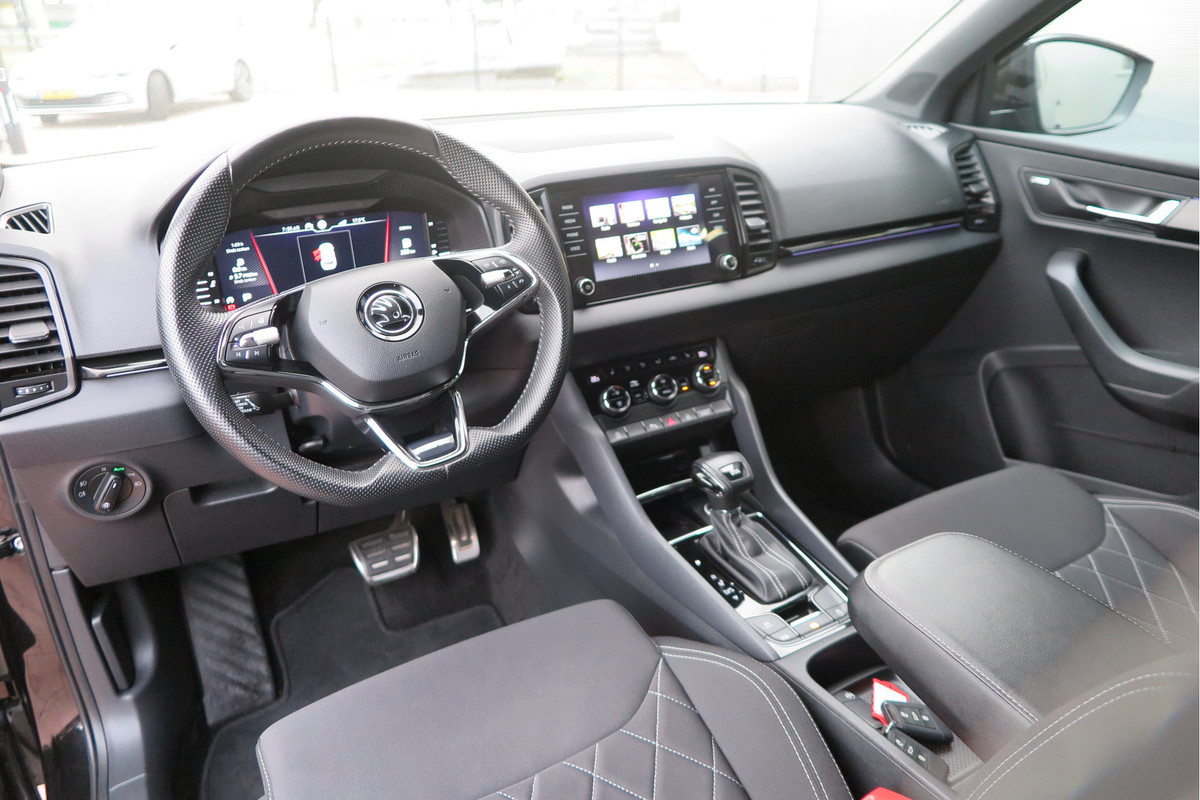 Een keurige auto, dat is deze ŠKODA Karoq, die 116874 kilometer heeft gelopen. Met zijn benzinemotor en automatische transmissie is dit een prima auto voor nog vele kilometers. Stoelverwarming is een plezierige extra in de auto. Binnen de kortste tijd is uw stoel behaaglijk warm. De achterklep opent automatisch met een druk op de knop. Handig als u met volle handen staat. Een heerlijk luxe optie van deze auto is het verwarmbare stuurwiel. In deze ŠKODA profiteert u onder andere ook van: 19 inch lichtmetalen velgen, Full LED koplampen, adaptief dempingsysteem, zwarte hemelbekleding, donker getint glas achter en in delen neerklapbare achterbank.