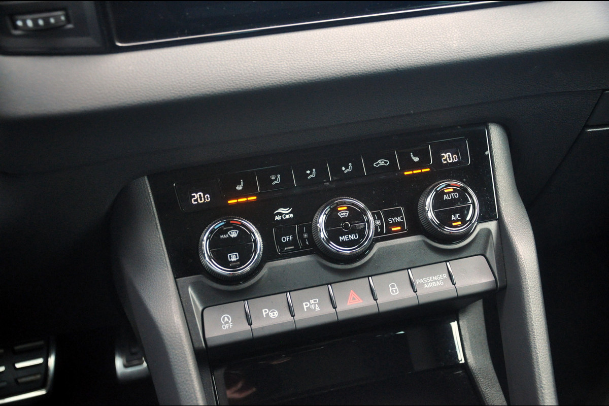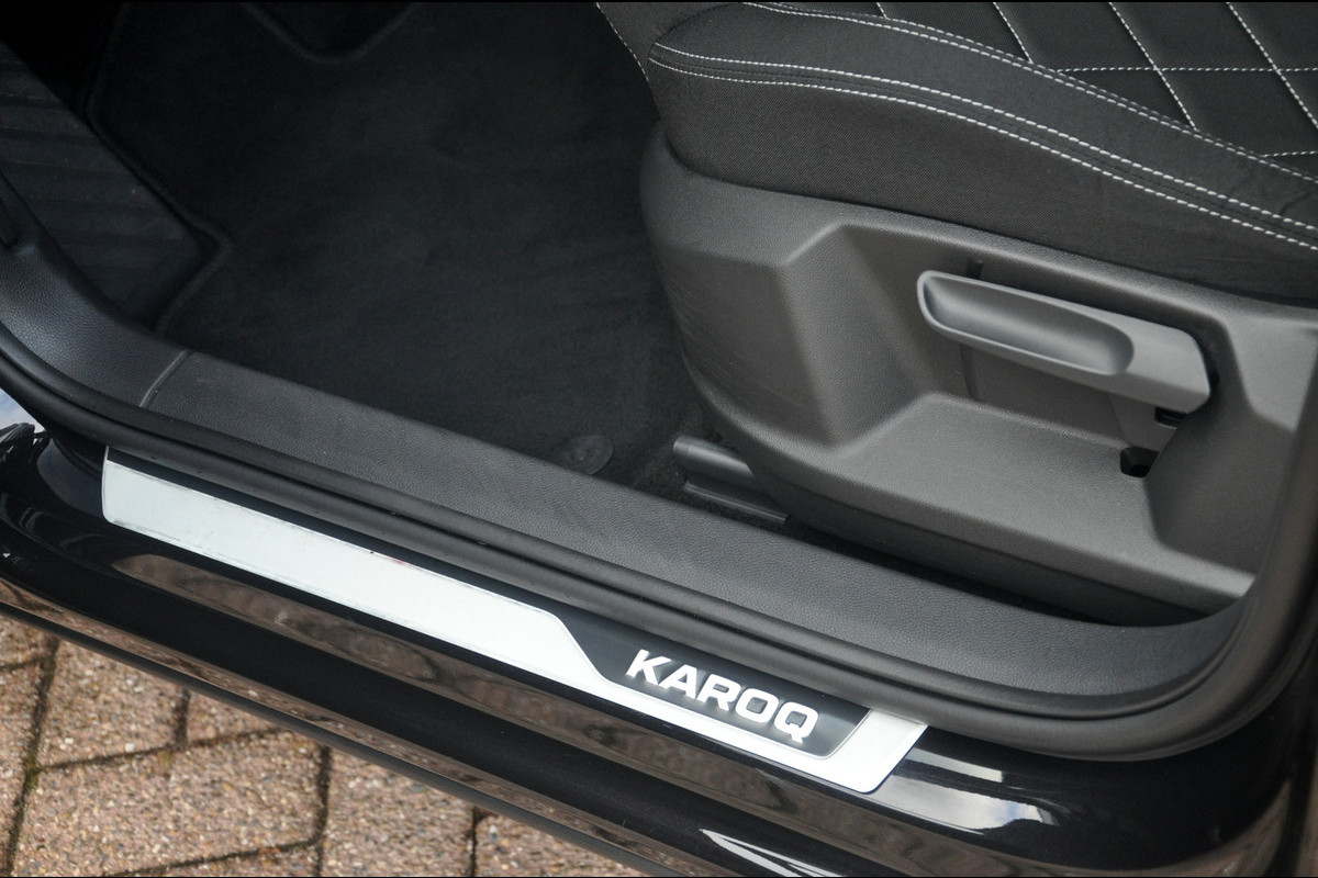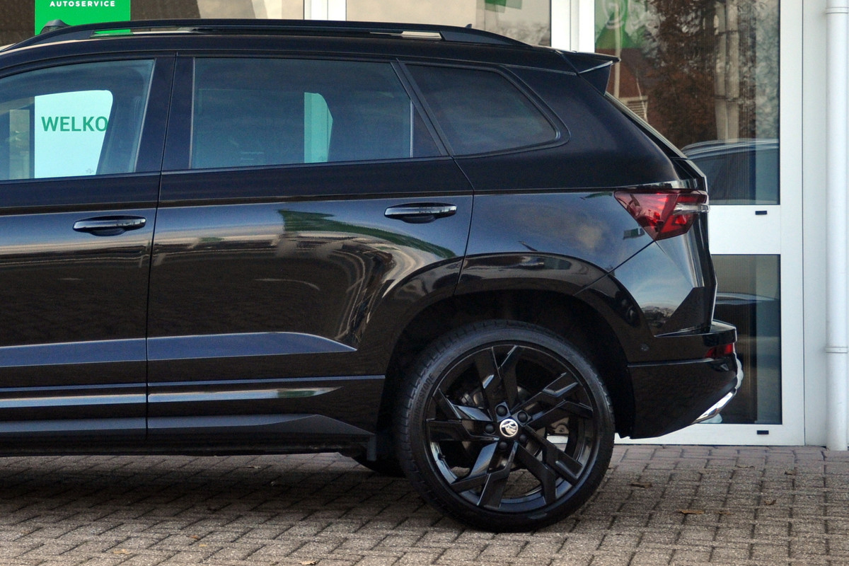 Zeer stoer uitgevoerde Skoda Karoq 1.5 TSI met DSG. In het stoere Black Magic, zwarte 19 inch lichtmetalen velgen en zwarte accenten een gave verschijning! De auto heeft een gunstige kilometerstand van 81.000 km en bevindt zich zowel optisch als technisch in goede staat. In deze zowel sportieve als luxe Sportline-uitvoering ook nog eens rijk uitgerust met o.a. een panoramadak, camera aan de voor en achterzijde, stuurwielverwarming, stoelverwarming voor en achter (!) en een wegklapbare trekhaak.