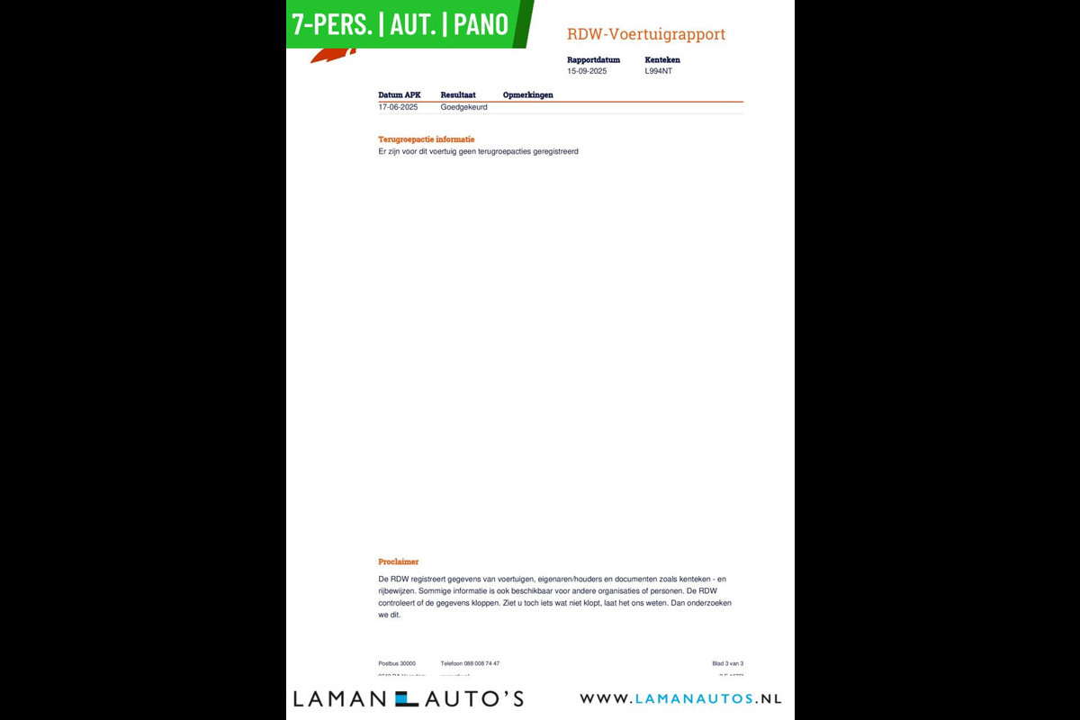 Deze advertentie en de inhoud ervan is met de grootst mogelijke zorg samengesteld. Het is echter mogelijk dat in de gehanteerde advertentietekst bepaalde opties en/of accessoires zijn vermeld welke niet op deze specifieke auto aanwezig zijn. Vraag voor aankoop naar de aanwezige opties en accessoires op de auto of bestelbus van uw keuze. Aan de getoonde informatie kunnen geen rechten worden ontleend en Laman Auto's kan nooit aansprakelijk worden gesteld voor de verstrekte informatie. Voor vragen en/of meer informatie over de exacte uitvoering en beschikbaarheid van de auto bel 06-52509973.