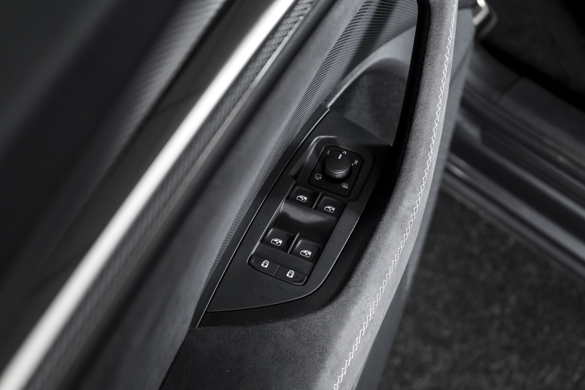 Het interieur is uitgevoerd in microvezel bekleding en voorzien van een elektrisch verstelbare bestuurdersstoel met geheugenfunctie. De afwerking is verzorgd met carbonaccenten en een volledig digitaal instrumentenpaneel, wat bijdraagt aan de moderne uitstraling.