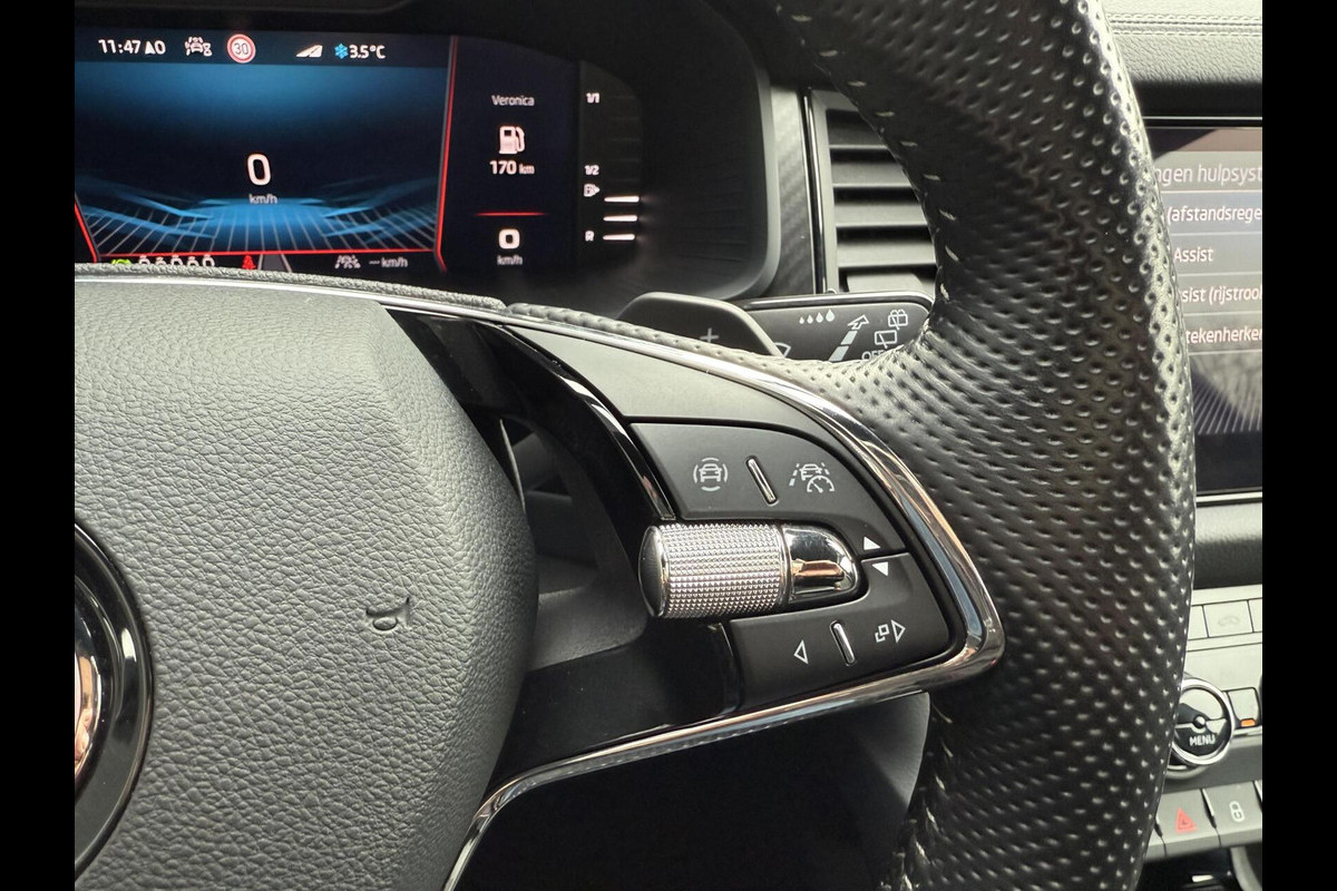 Het personaliseren van uw cockpitinterface is mogelijk met het digitale dashboard in deze auto. Afstand schatten bij het achteruitrijden? Niet nodig. U weet het precies, dankzij de achteruitrijcamera. Adaptive cruise control is veilig en comfortabel. De snelheidsregelaar houdt automatisch afstand tot het voertuig dat voor u rijdt. Dankzij Connected Services weet u precies waar uw auto geparkeerd staat. Ook andere functies, zoals bandenspanning en brandstofniveau, zijn via de app altijd onder handbereik. Voor een veilige rit is het belangrijk dat uw handen het stuur vasthouden en uw ogen gefocust blijven op de weg; daarom kunt u het audio-installatiesysteem, met DAB-ontvangst en navigatiesysteem bedienen met het stuurwiel of via spraakbediening. Deze Skoda is voorzien van WIFI-hotspot, achteropkomend verkeer waarschuwing, electronic climate control, schakelpaddles aan het stuur, regensensor en automatisch dimmende buitenspiegels.