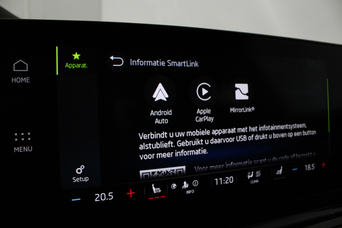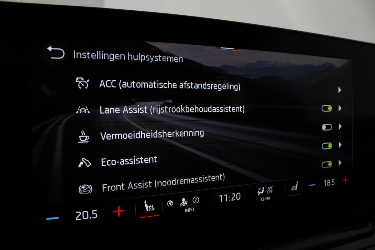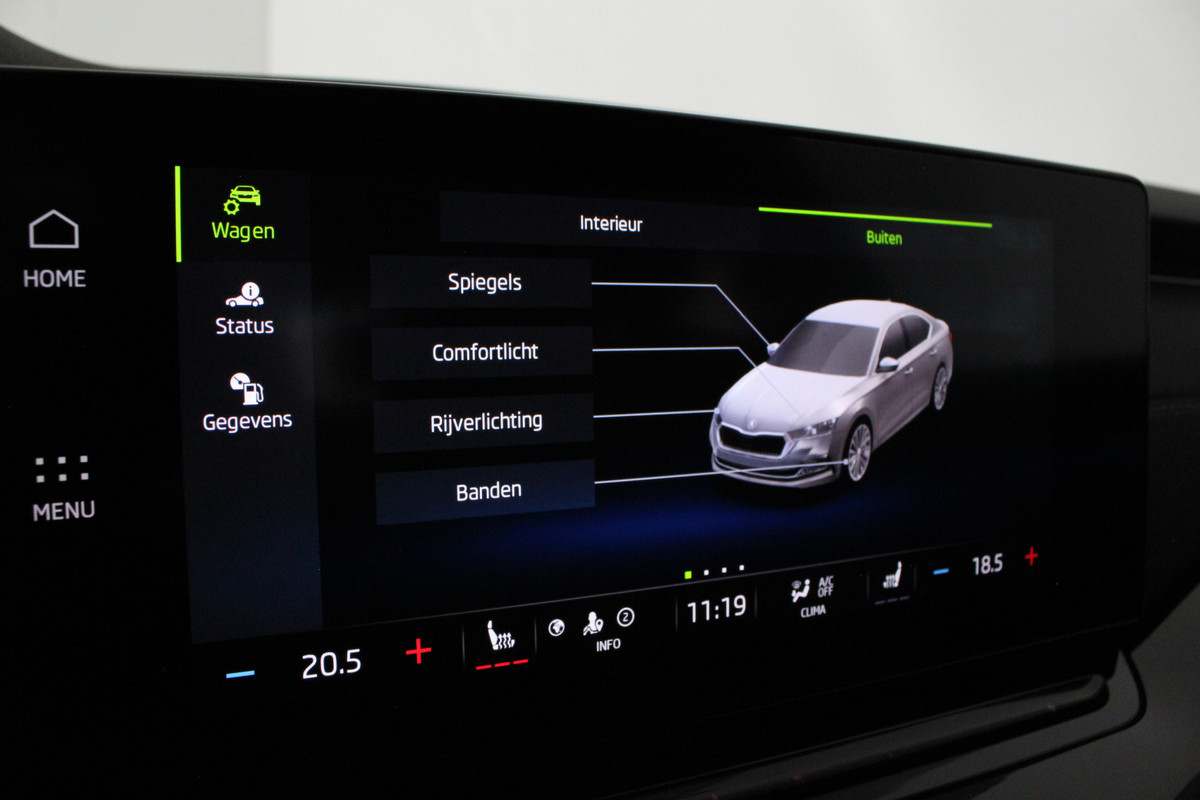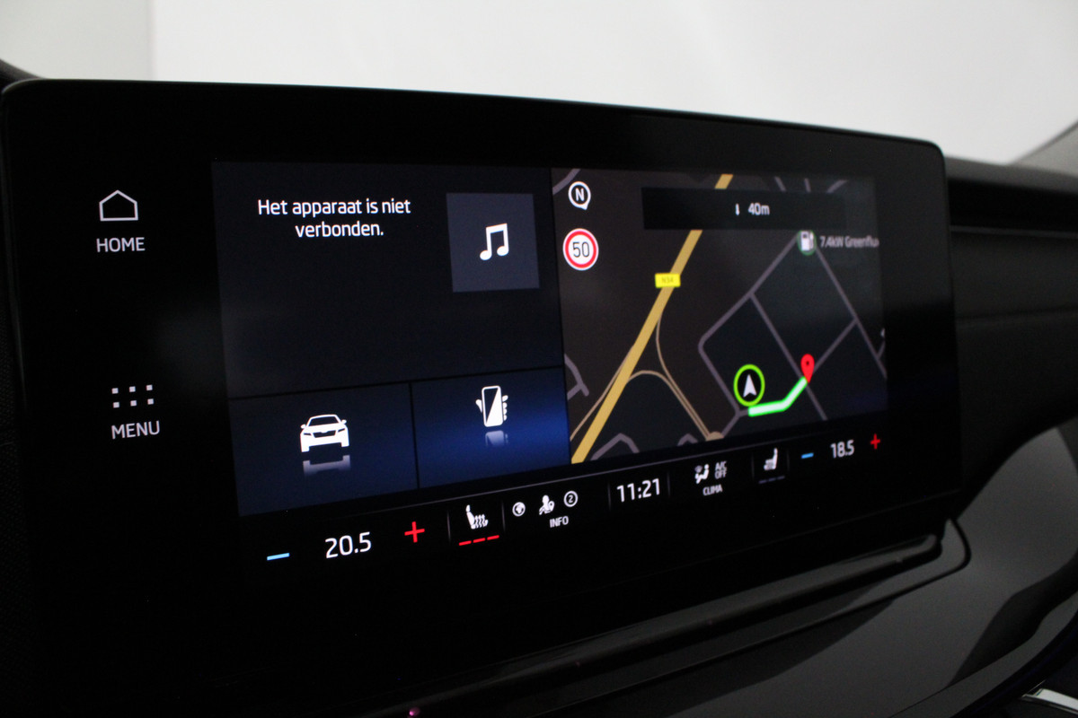 Binnenin merkt u direct hoe compleet deze Octavia is uitgevoerd. Dankzij de automatische airconditioning en de separate airco achter is het klimaat altijd aangenaam, terwijl de sfeerverlichting zorgt voor een warme, luxe beleving in het interieur. Op koude dagen bieden de verwarmbare voorstoelen extra comfort en maakt de draadloze telefoonlader het u gemakkelijk om onderweg verbonden te blijven zonder gedoe met kabels.