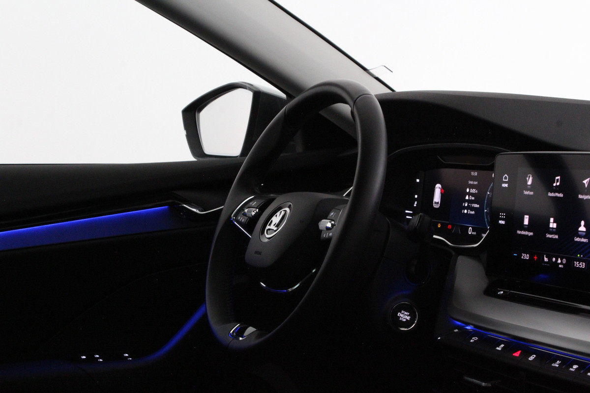 Zodra u instapt, merkt u dat deze Octavia is gericht op comfort en gebruiksgemak. De automatische airconditioning zorgt altijd voor een aangename temperatuur, terwijl de verwarmbare voorstoelen en verstelbare lendesteunen extra ondersteuning bieden. De sfeerverlichting draagt bij aan een prettige ambiance in het interieur. Met keyless entry en keyless start wordt instappen en wegrijden extra eenvoudig.