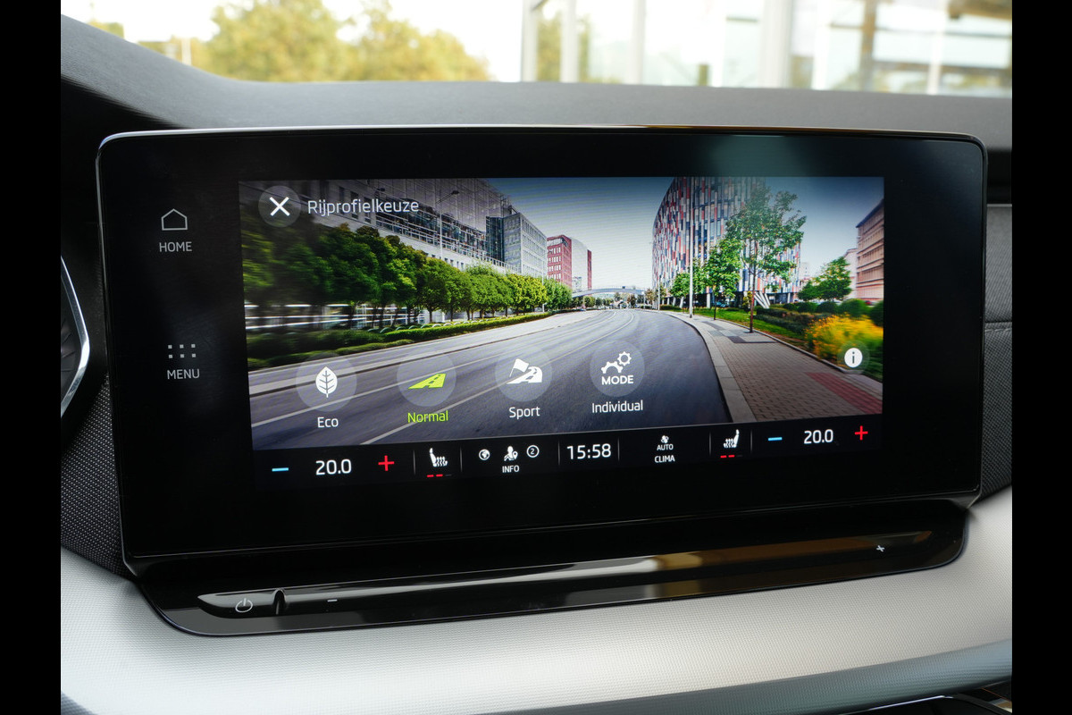 Stel de interface voor uw cockpit naar wens in met het digitale dashboard van deze auto. Adaptive cruise control is veilig en comfortabel. De snelheidsregelaar houdt automatisch afstand tot het voertuig dat voor u rijdt. Connected Services zorgen ervoor dat de belangrijkste functies en data van de auto altijd en overal te checken zijn. Gewoon via de app op de smartphone. Het full map navigatiesysteem en het audiosysteem (met DAB-ontvangst!) bedient u met knoppen op het stuur of met gesproken commando's. Ook handig is de draadloze telefoonlader. Zonder snoeren en kabels uw smartphone bijtanken! Met WIFI-hotspot, automatische airconditioning, parkeersensoren voor en achter, regensensor, keyless entry en automatisch dimmende binnenspiegel is deze ŠKODA helemaal compleet.