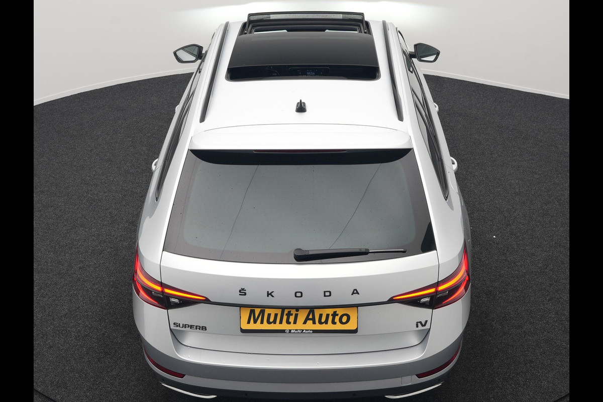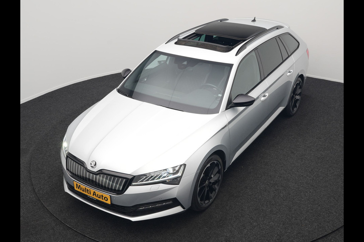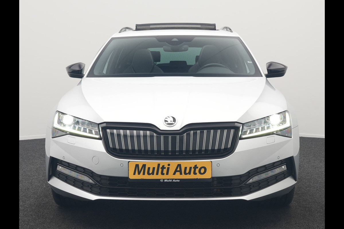 ŠKODA Superb Combi 1.4 TSI iV Sportline Plug In Hybrid 218pk Dealer O.H PHEV | Trekhaak Af Fabriek | Panodak | Adaptive Cruise | Camera | Alcantara Sportstoelen Memory & Verwarmd | Apple Carplay | Navigatie | Matrix LED | Sportstuur Vewarmd | Virtual | DAB |