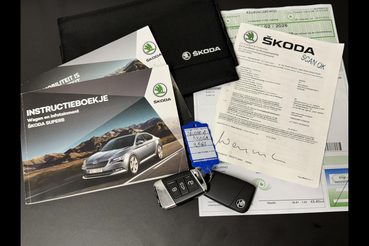 Zeer nette Superb Combi voorzien van vele extra's zoals bi-xenon verlichting, lederen/alcantara interieur met verwarmde en elektrisch verstelbare voorstoelen met geheugen, adaptive cruise control, climate control, Apple Carplay, Android Auto en meer. Met de wegklapbare trekhaak mag 1800 kilo getrokken worden. De auto is keurig dealer onderhouden en heeft de laatste onderhoudsbeurt gehad bij 105.000 kilometer in juli 2025. De volgende beurt is pas in juni 2026.