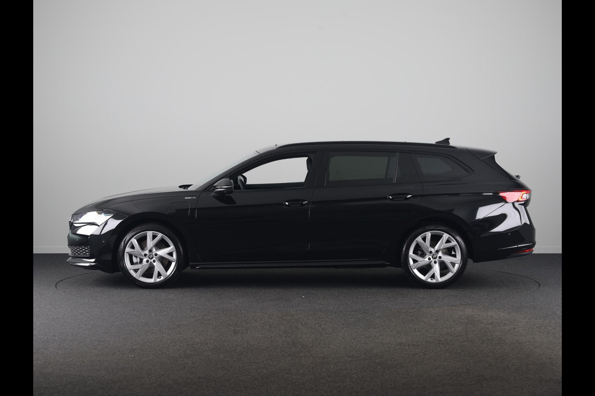 Škoda Superb Combi Sportline Business PHEV 1.5 TSI 204 pk 6 versn. DSG | Panoramadak, elektrisch bedienbaar | Trekhaak, wegklapbaar | Travel Assist Plus Sportline | Dynamic Chassis Control Pakket | CANTON Soundsystem | Lichtmetalen velgen 19 inch Aniara Aero zilver