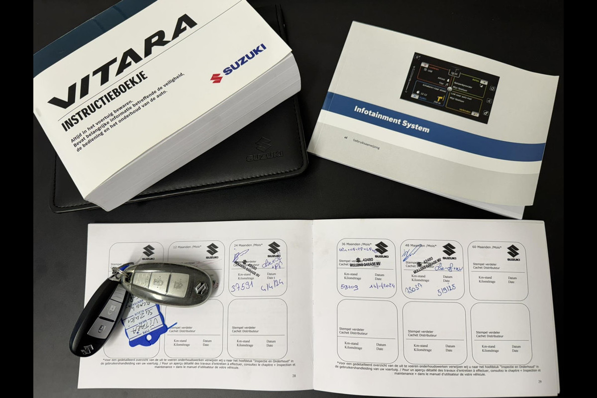 Keurig nette Vitara welke is voorzien van een prachtige two-tone kleurencombinatie. De auto staat op 17inch licht metalen velgen welke de auto sportief op de weg zetten. De krachtige 1.5 full hybride motor welke is gekoppeld aan een soepele automaat rijd zeer comfortabel en is verrassend zuinig. Het interieur is voorzien van onder andere een panoramadak, Carplay, stoelverwarming, camera + sensoren, climate control en ook diverse veiligheidsopties mogen niet ontbreken. Ook een afneembare trekhaak waarmee je 1200kg mag trekken is er ook. Het onderhoud is keurig netjes in orde en volledig bij de dealer uitgevoerd. De laatste beurt is geweest bij 78.037 in september 2025.