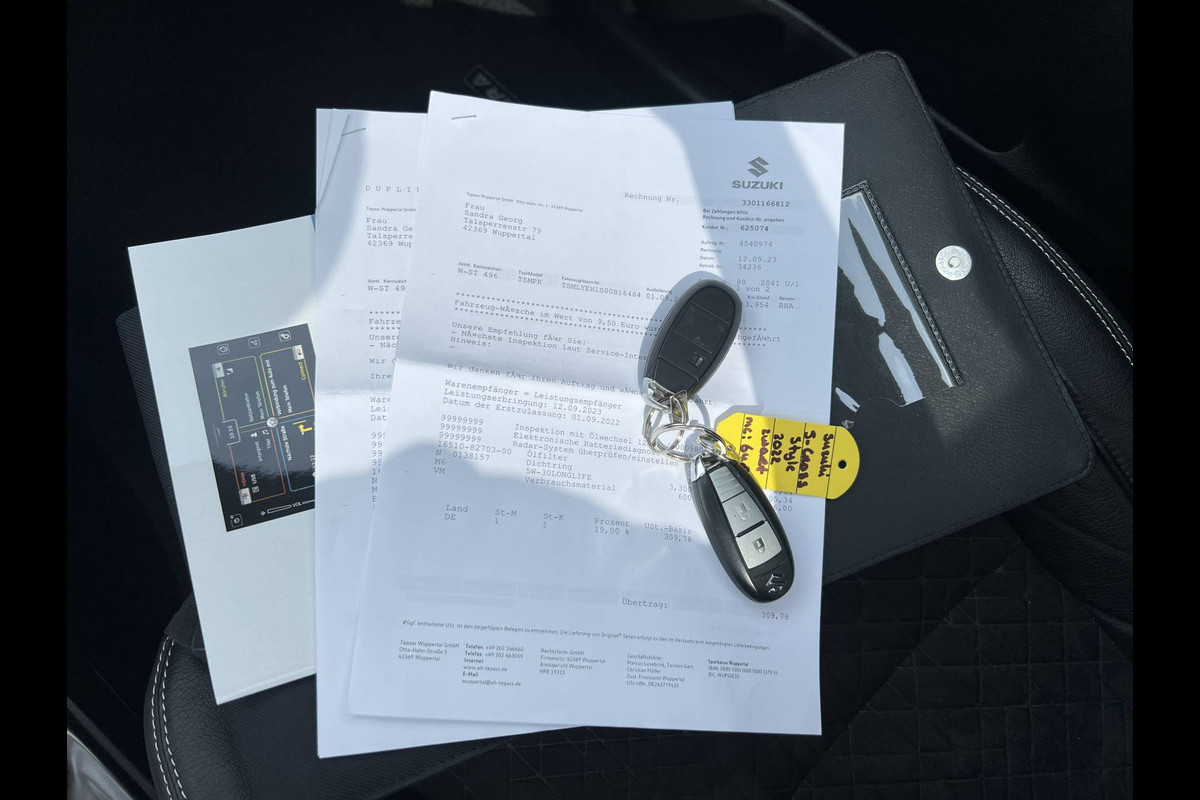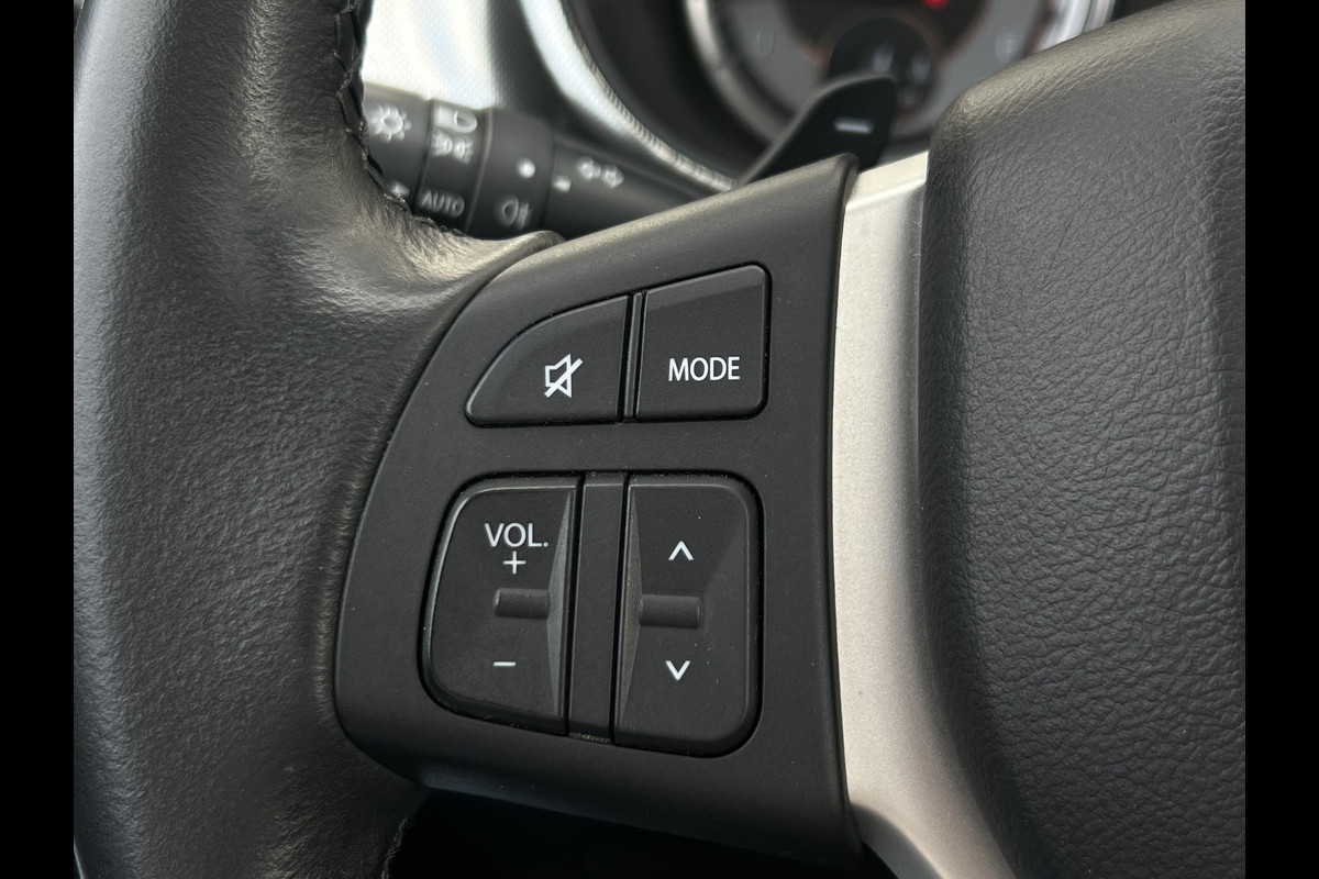 Een vergeten muurtje, een verborgen paaltje? Dat gebeurt niet meer, dankzij de achteruitrijcamera. Adaptive cruise control houdt de ingestelde snelheid vast en houdt automatisch afstand tot uw voorligger. Terwijl het full map navigatiesysteem de ideale route voor u uitstippelt, geniet u van de kwaliteit van het audiosysteem met DAB-ontvangst. De bediening is bovendien gemakkelijk via knoppen op het stuur. Electronic climate control regelt volautomatisch de temperatuur. U kiest de gewenste temperatuur en het systeem doet de rest. Om de veiligheid onderweg te verhogen, heeft deze Suzuki zowel een automatisch inschakelbare verlichting als een regensensor aan boord, zodat hij zelf de verlichting en de ruitenwissers kan inschakelen. De Suzuki is standaard voorzien van: schakelpaddles aan het stuur, keyless entry, usb-aansluiting, centrale deurvergrendeling met afstandsbediening, bagage afdekhoes en boordcomputer.