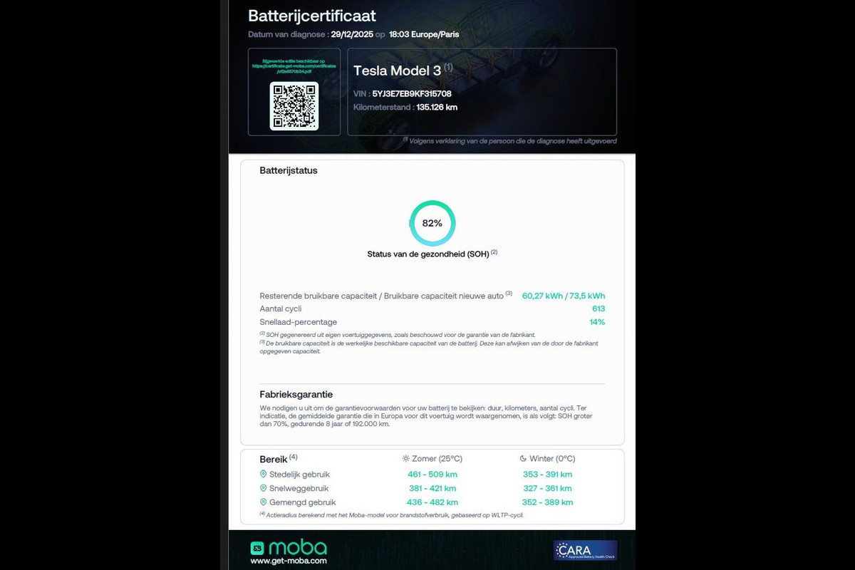 Gemiddeld elektriciteitsverbruik: 15 kWh/100km