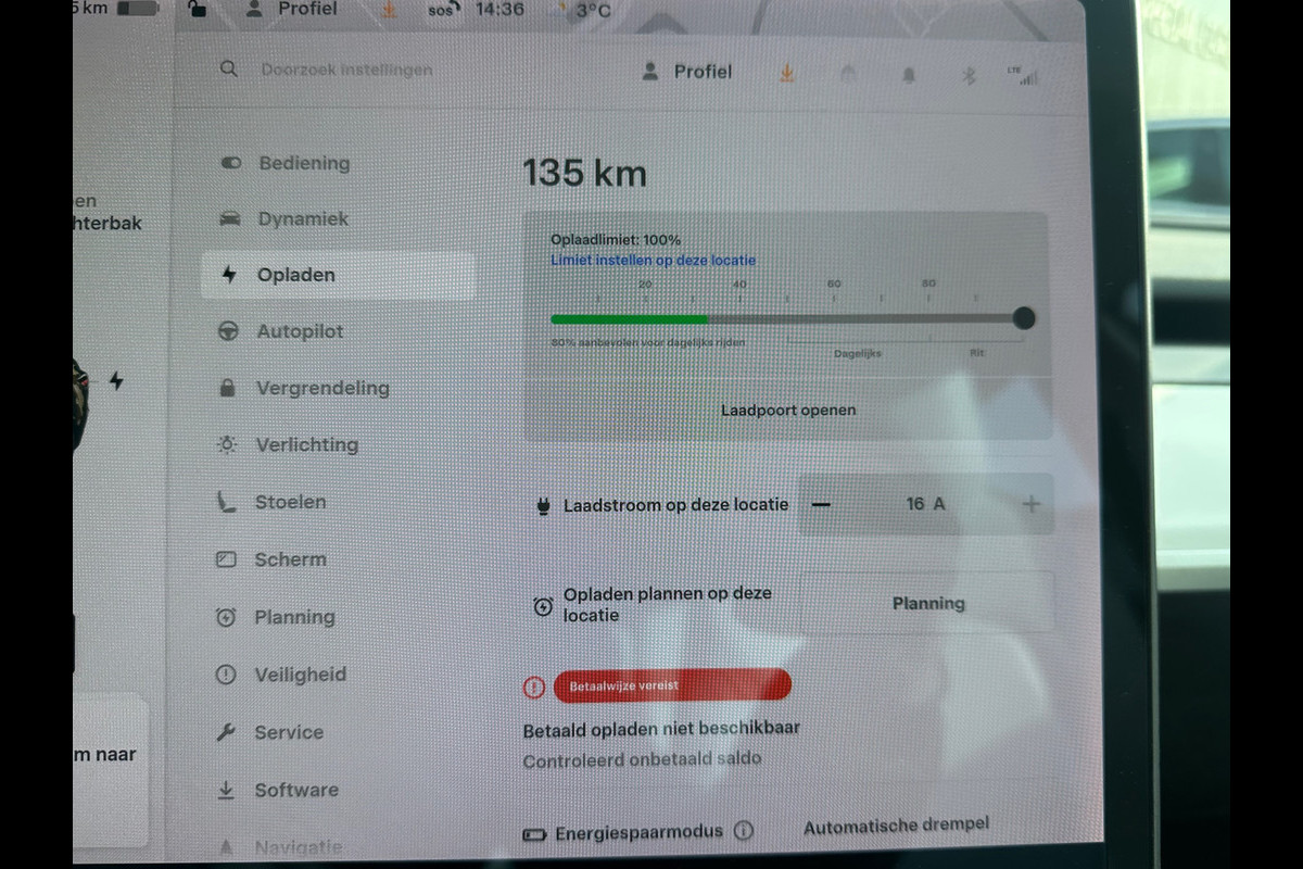 Accu laden: Type 2, 3-fasen, 16.5 kW, 125 km actieradius per uur, compleet vol in 20 uur en 49 minuten