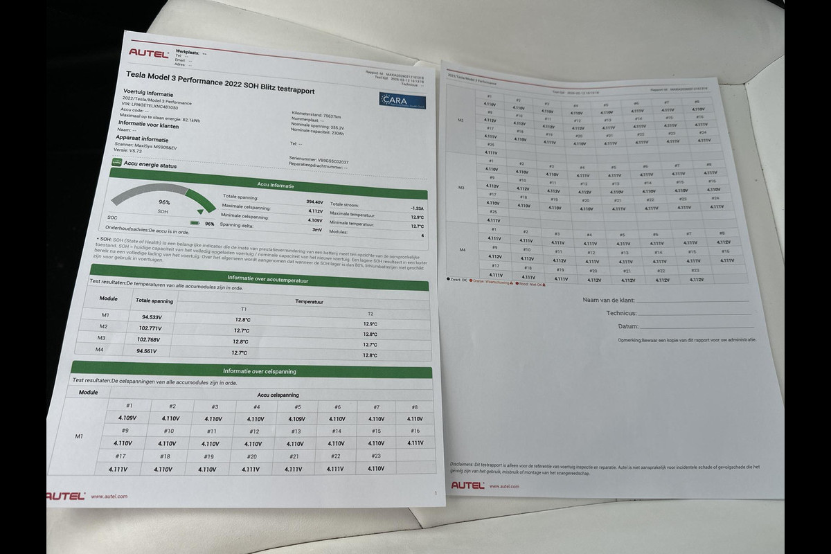 Accu: 75 kWh, Conditie: 96%