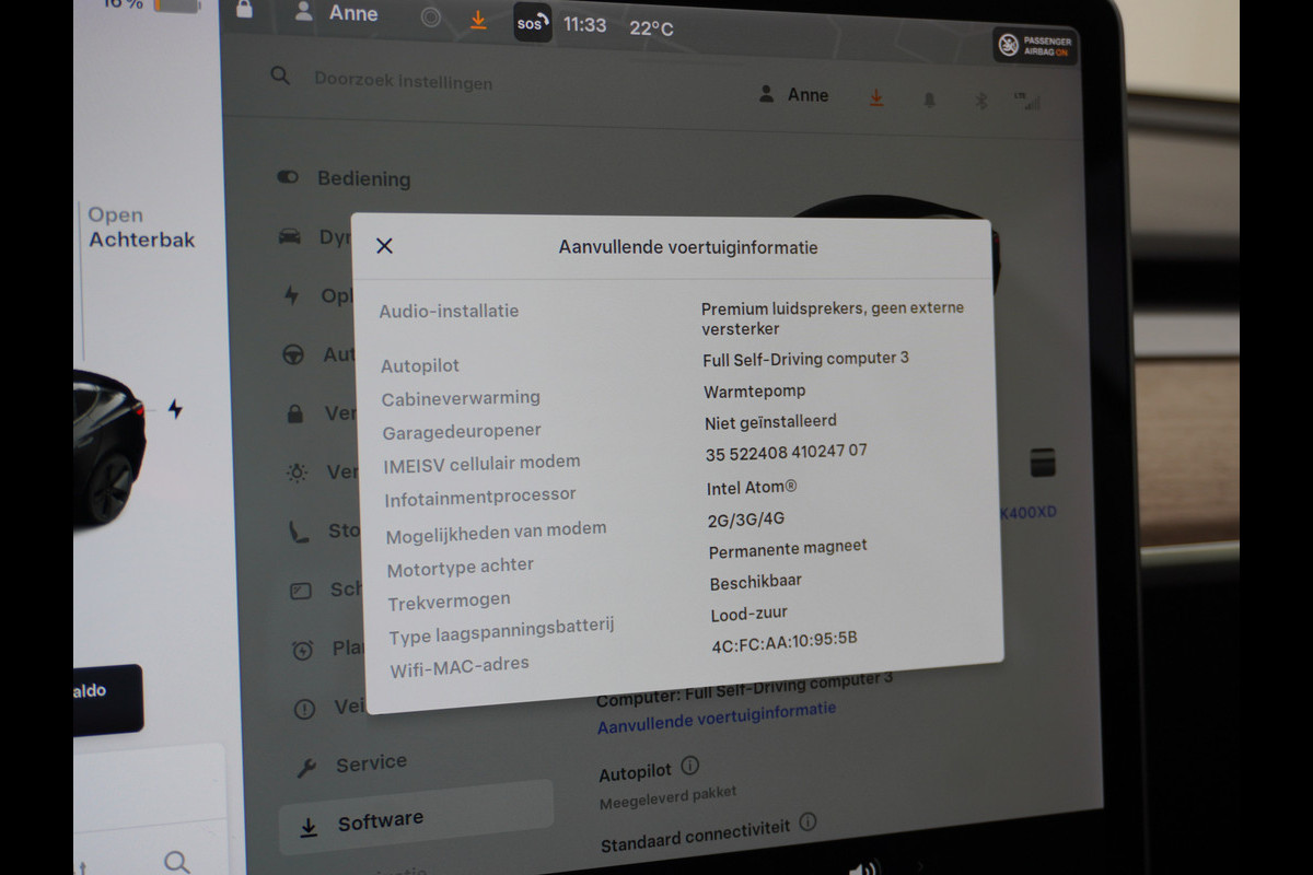 Dankzij de spraaksturing bedient u verschillende functies zonder uw handen van het stuur te halen. Deze auto kent elke bestemming als z'n broekzak, dankzij het full map navigatiesysteem. Overal een snelle internetverbinding: de ingebouwde WIFI-hotspot staat tot uw beschikking. De auto is ook uitgevoerd met electronic climate control. Geen capriolen meer als u met armen vol de auto moet openen. De keyless entry heeft u al herkend en ontgrendelt de Tesla Model 3 automatisch. Ook WIFI-hotspot en automatisch dimmende buitenspiegels horen tot de voorzieningen op deze auto.